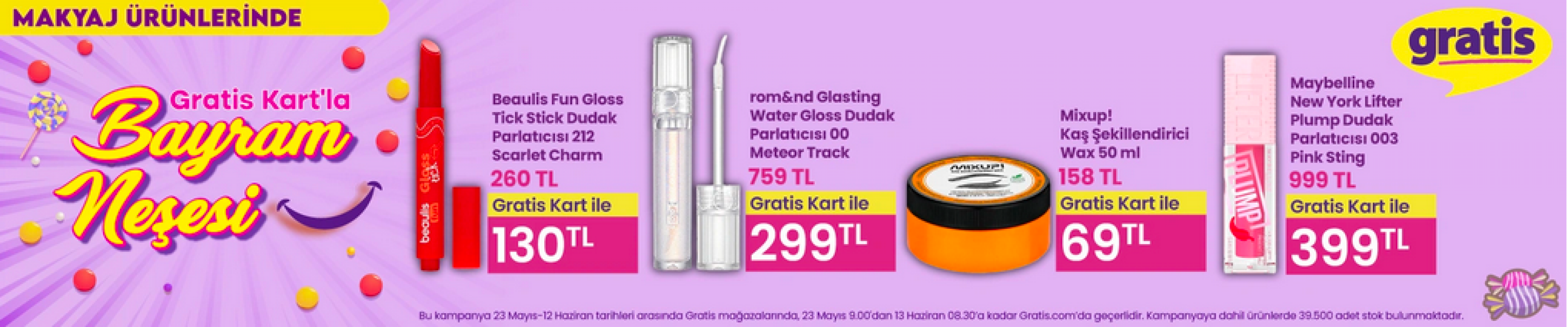 Bayram coşkusunu bütçe dostu alışverişle birleştirmek isteyenler, Gratis kartla yapacakları alışverişlerde Beaulis, Rom&And, Mixup ve Maybelline New York gibi markalarda da avantajlı fiyatlardan faydalanabiliyor.
