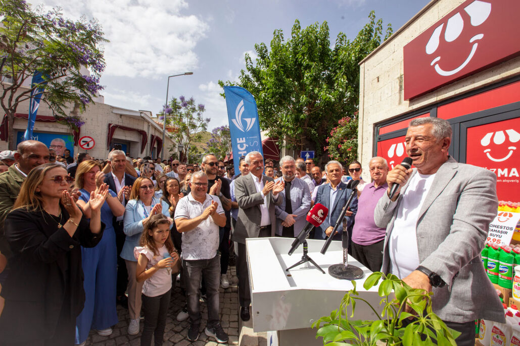 Belediye Başkanı Mustafa Günay’ın öncülüğünde kurulan GÜZMAR Market, Atatürk Mahallesi Çarşı’da düzenlenen törenle kapılarını açtı. Açılışta konuşan Başkan Günay, “Halkımızı üç harflilere mahkûm etmeyeceğiz” diyerek zincir marketlere karşı net bir duruş sergiledi. Açılışa vatandaşlar büyük ilgi gösterdi, market önünde uzun kuyruklar oluştu.