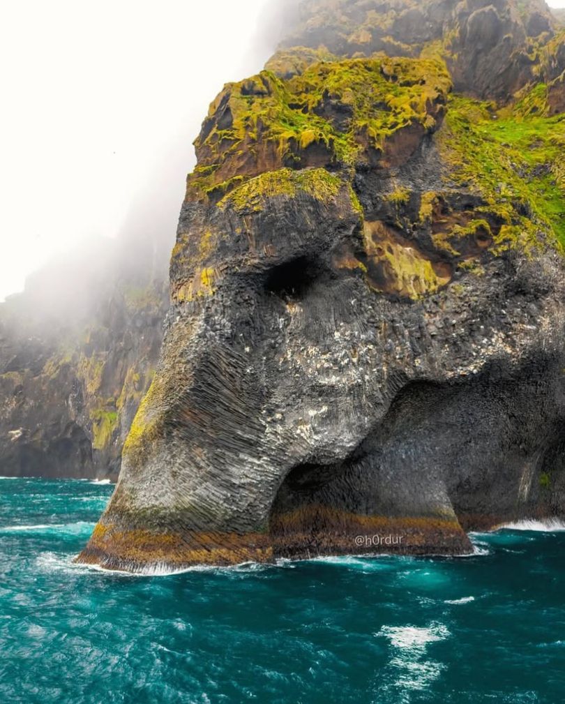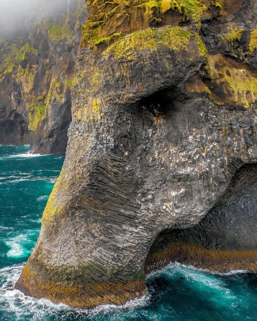 İzlanda’daki Heimaey’de bulunan Fil Kayası, buzlu Atlantik sularına uzanan hortumuyla adeta gerçek bir fili andırıyor. Doğanın yarattığı bu harika, ziyaretçileri hayran bırakıyor.
