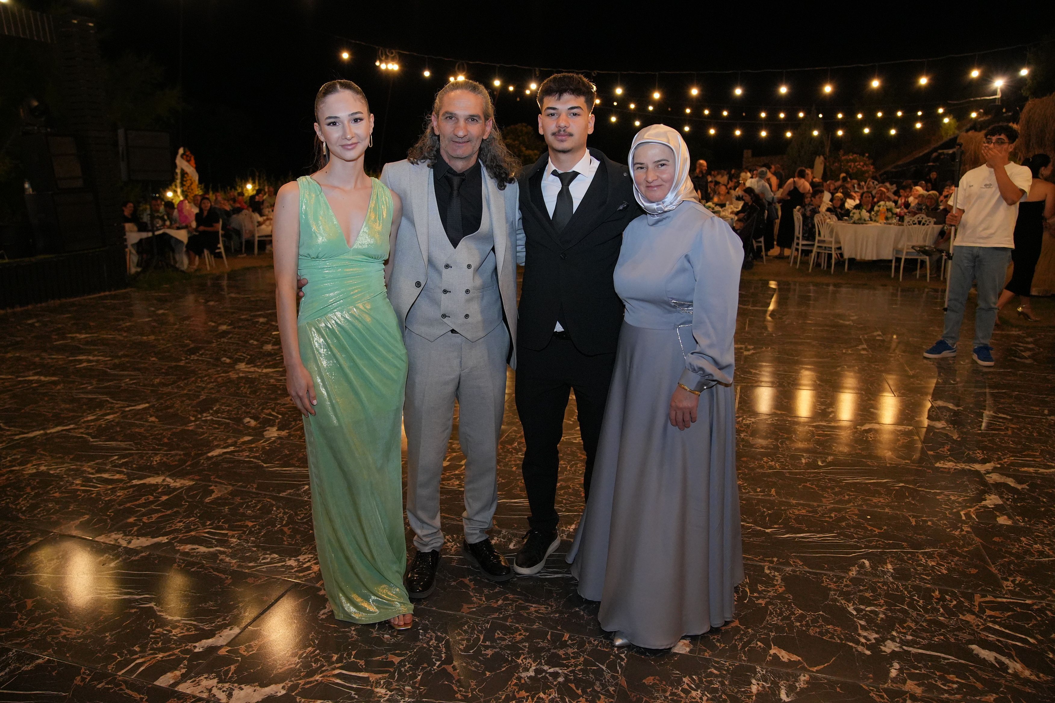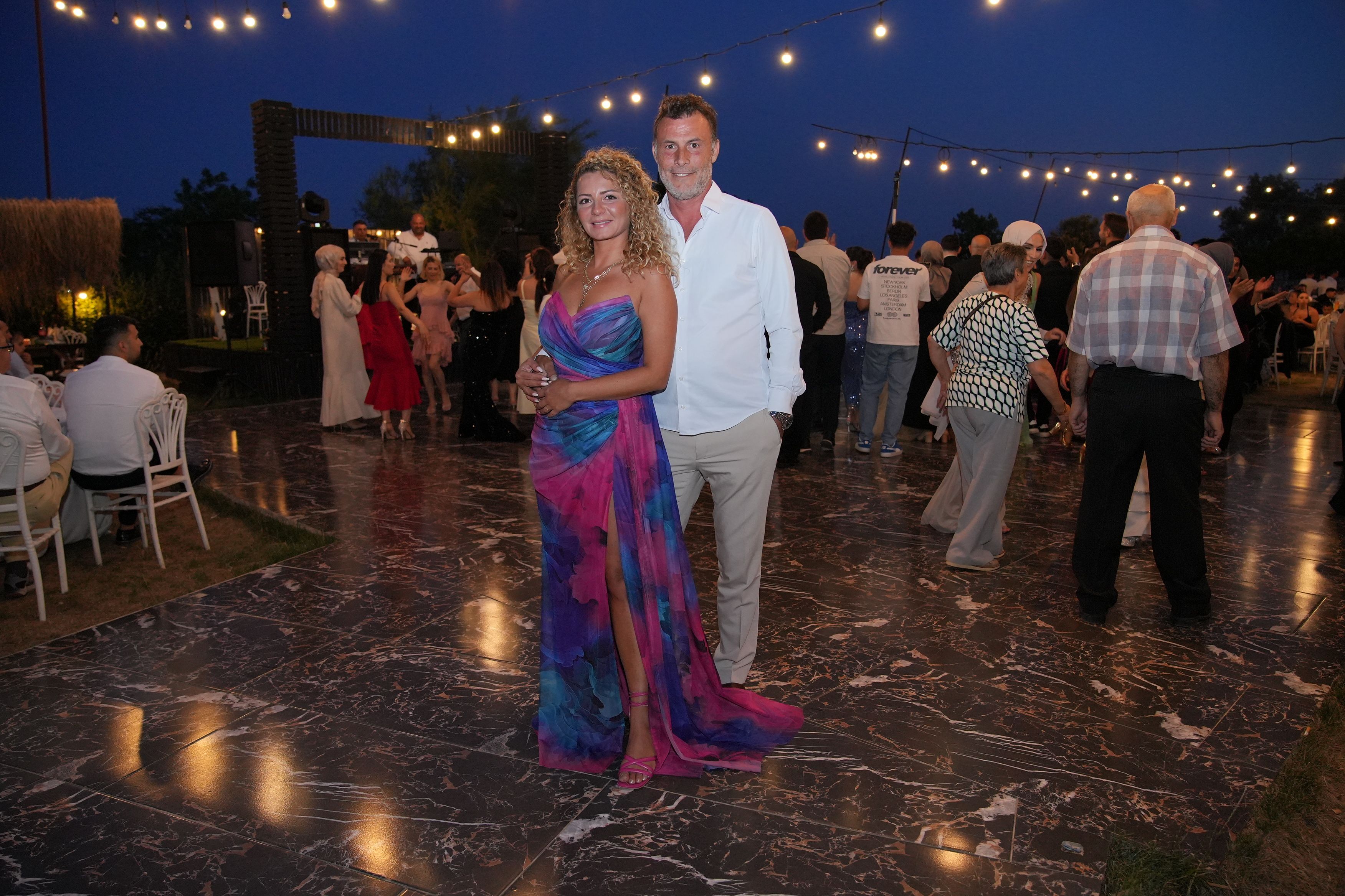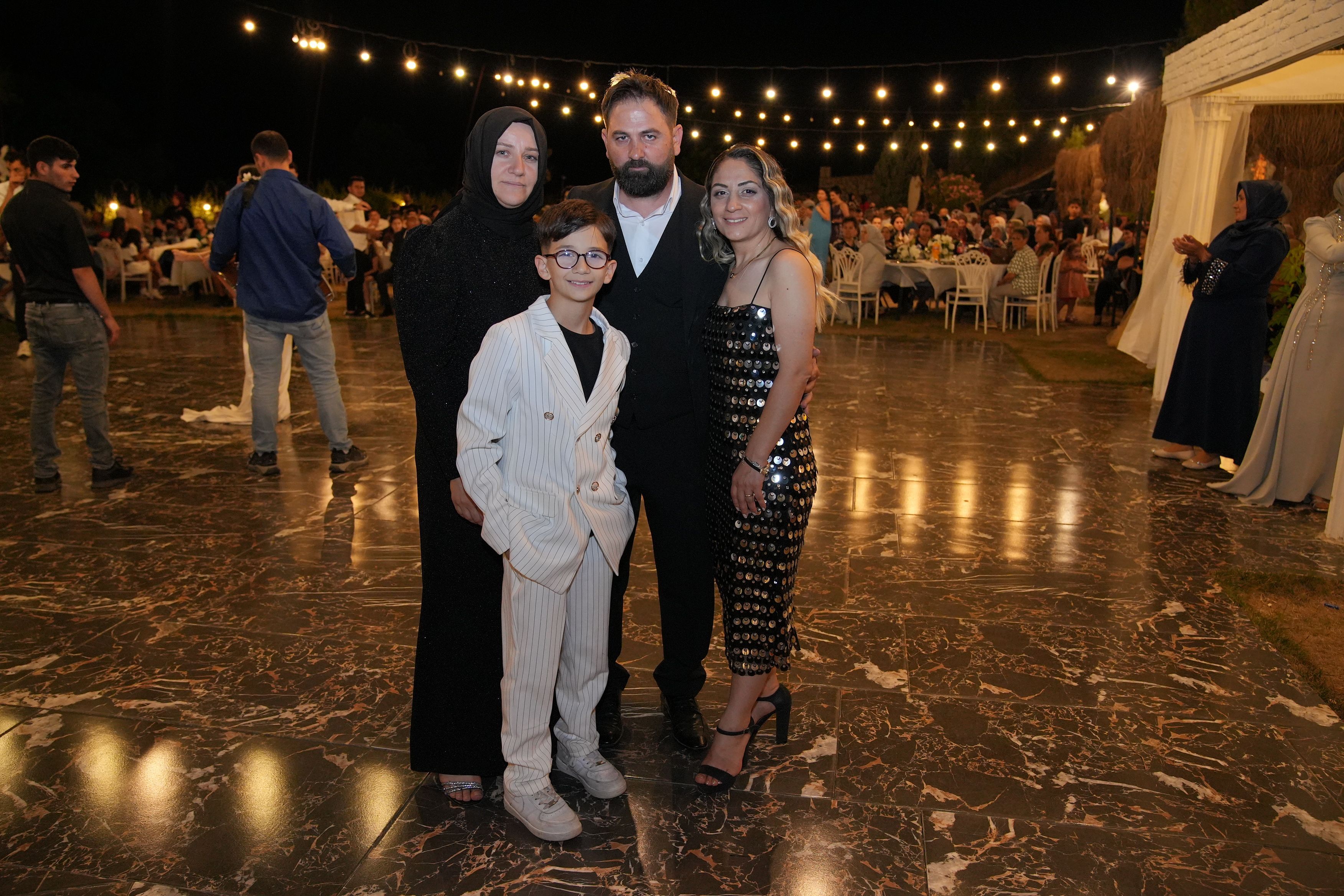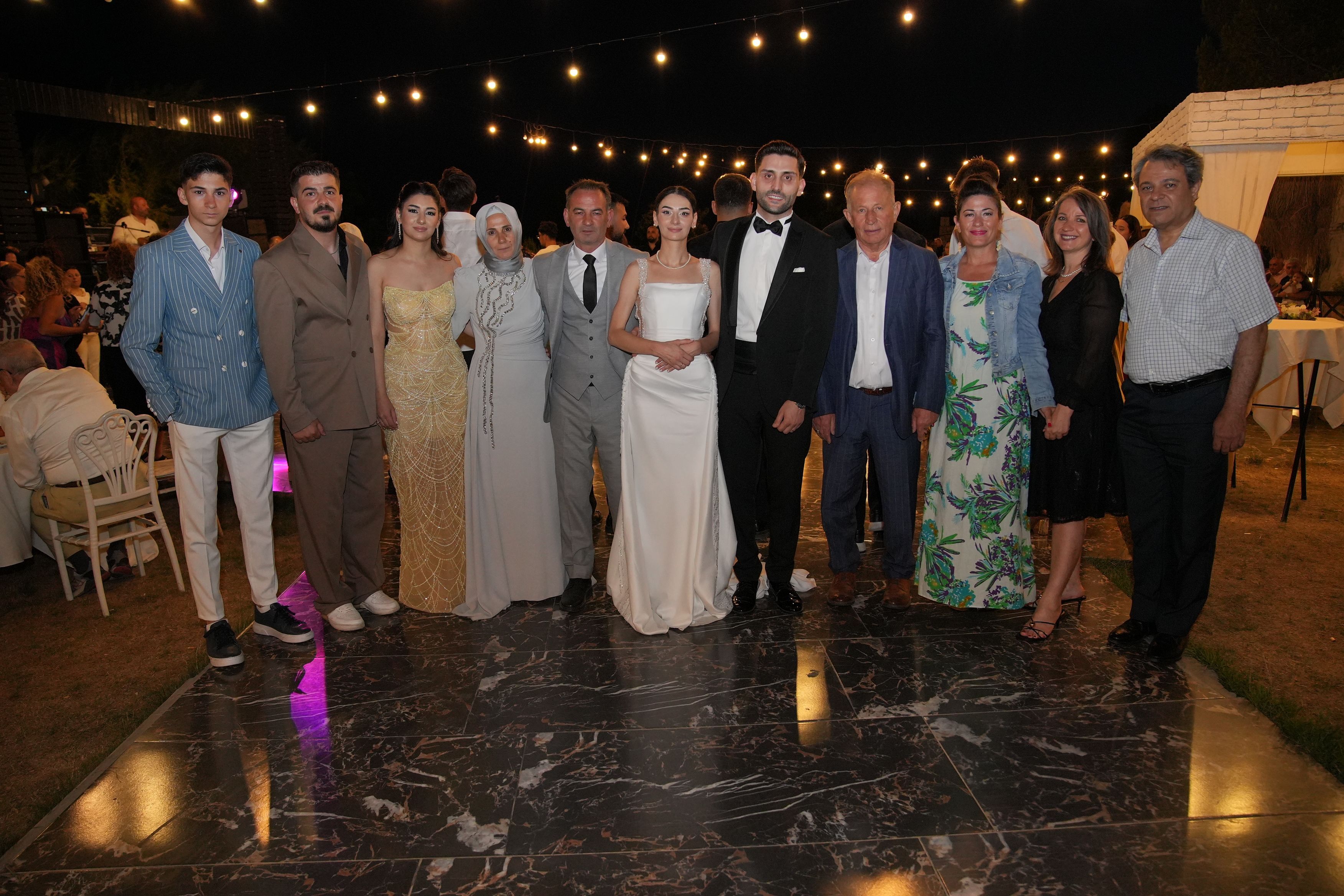 Yoğun katılım nedeniyle düğün mekanının otoparkında yer bulmakta zorlanan davetliler, gece boyunca canlı müzik eşliğinde doyasıya eğlendi.