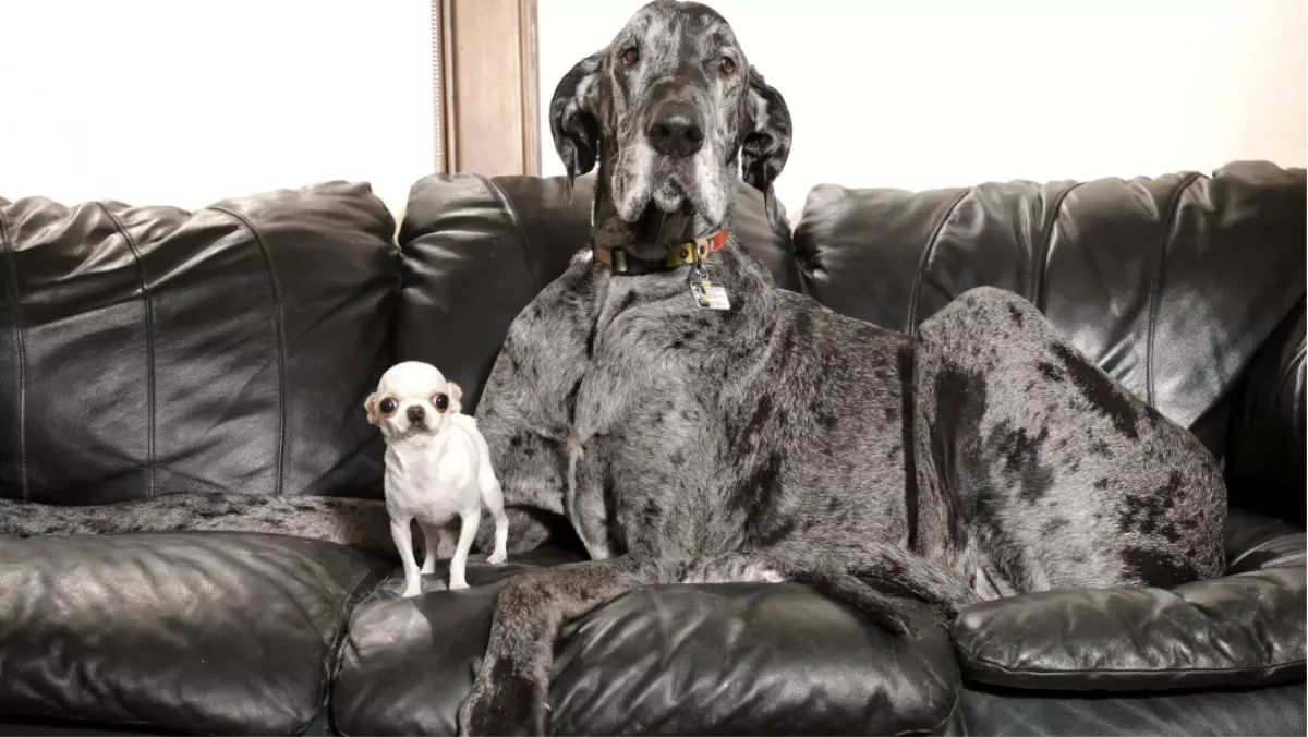 Reggie ve Pearl, kendi alanlarında dünya rekoru sahibi. Reggie tam 1 metre omuz yüksekliğiyle yaşayan en uzun köpek, Pearl ise yalnızca 9.1 cm’lik boyuyla en kısa köpek unvanını taşıyor