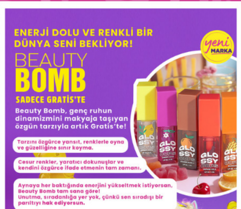 Genç ruhların dinamizmini makyaja taşıyan BEAUTY BOMB, renkli ve enerjik dünyasıyla dikkat çekiyor. Özgün tarzıyla fark yaratmak isteyenler için yepyeni bir seçenek.