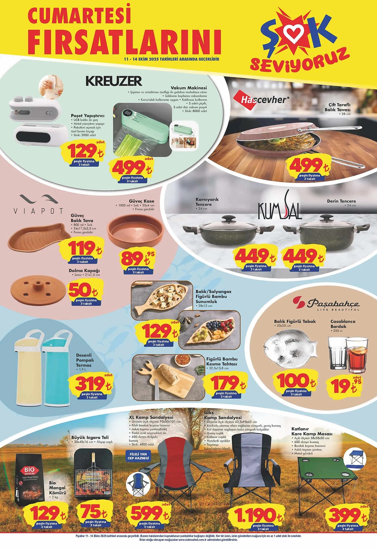 Türkiye’nin önde gelen perakende zincirlerinden ŞOK Market, 11-14 Ekim 2025 tarihleri arasında geçerli olacak aktüel ürünler kataloğunu yayımladı. Hafta sonuna özel hazırlanan kampanyada mutfak eşyalarından kamp ekipmanlarına, balıkçılık malzemelerinden ev ürünlerine kadar geniş bir ürün yelpazesi yer alıyor.