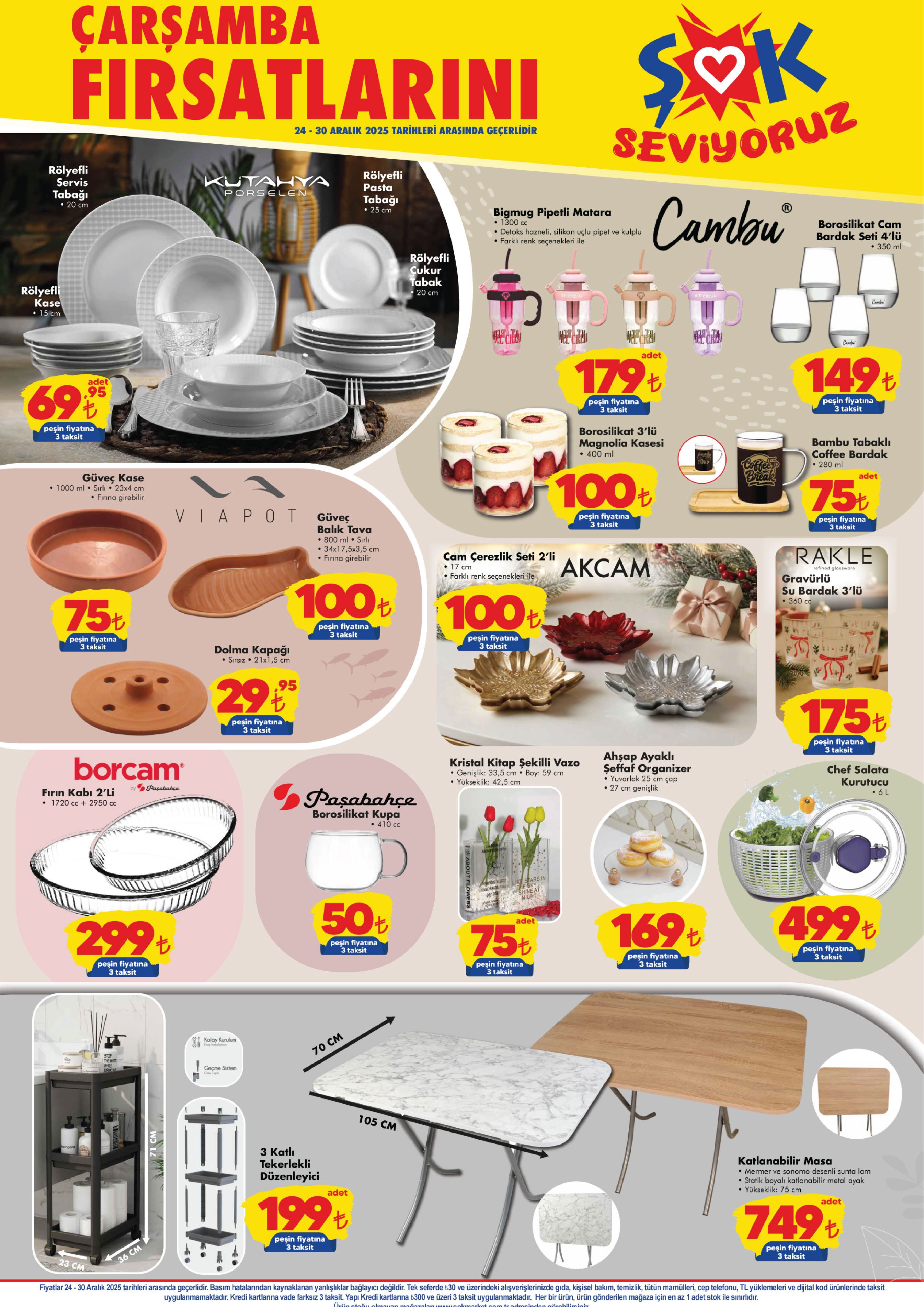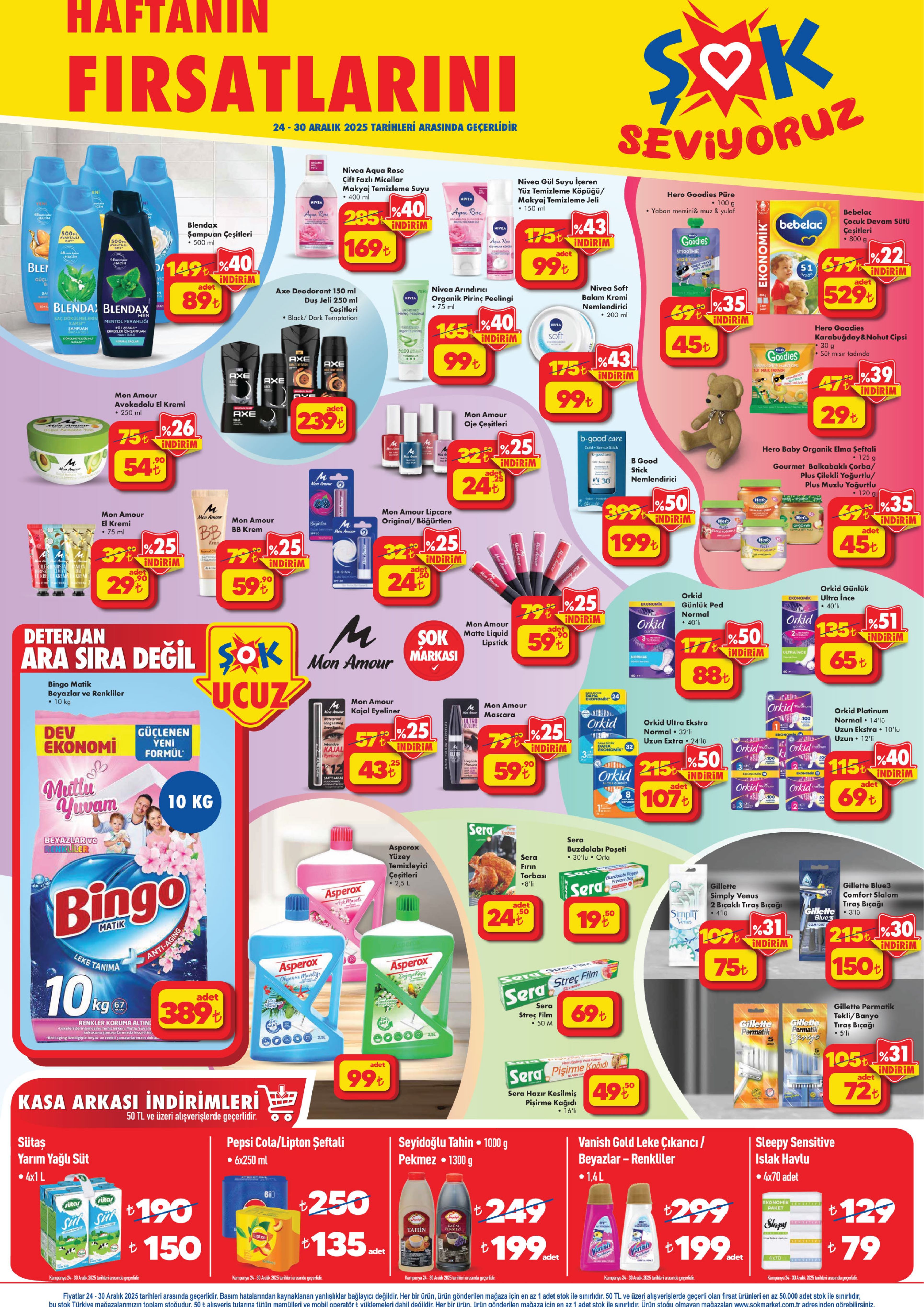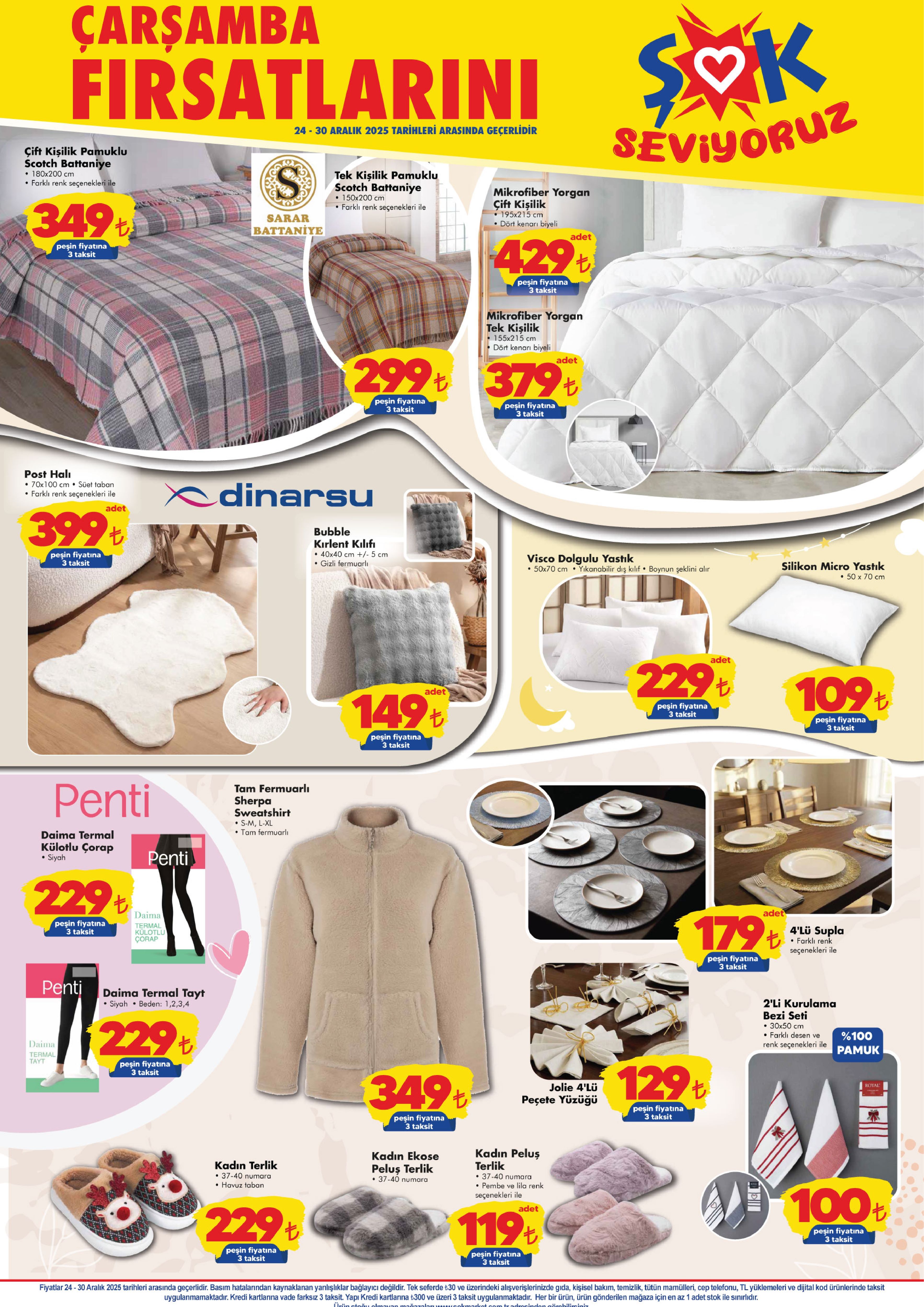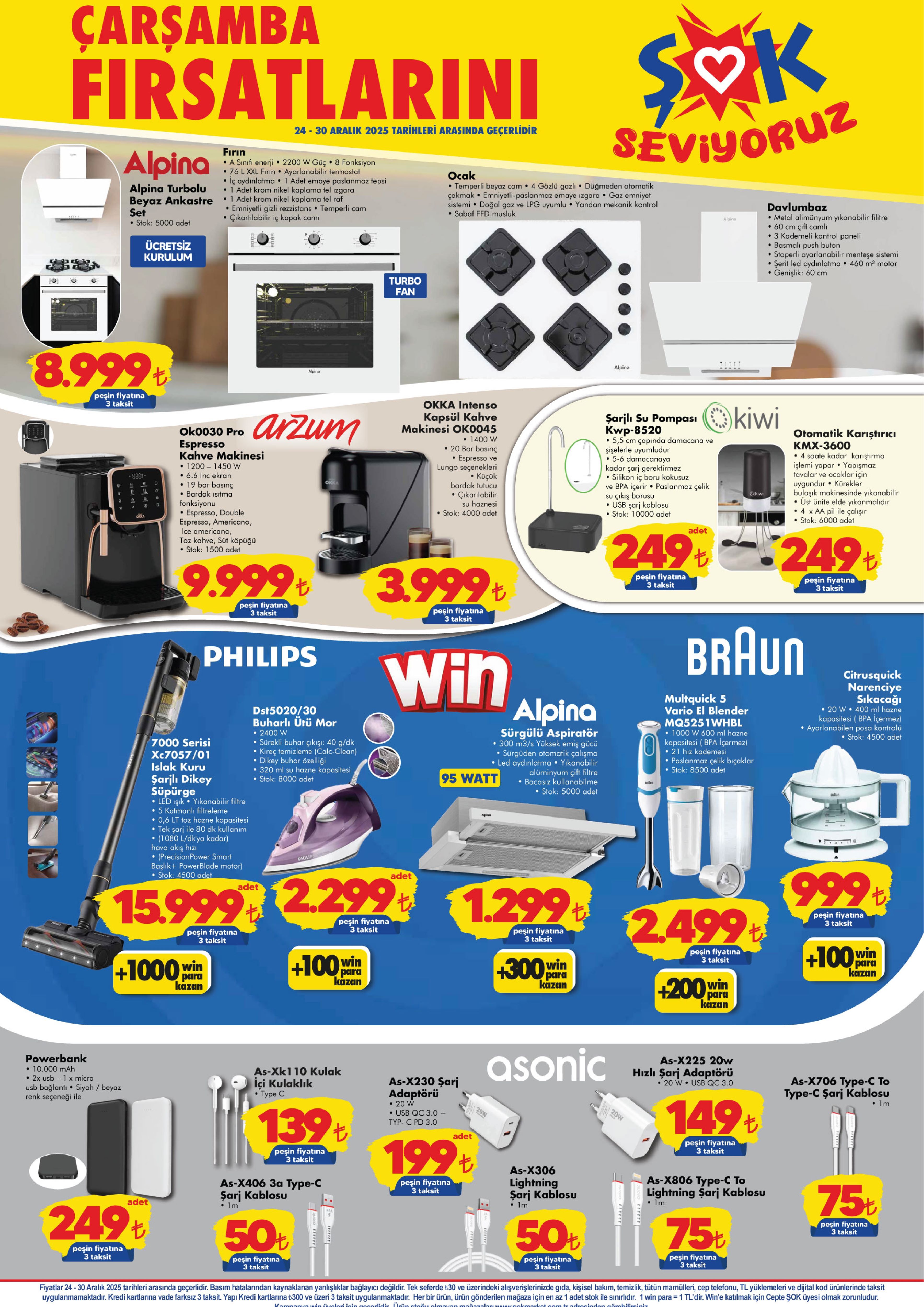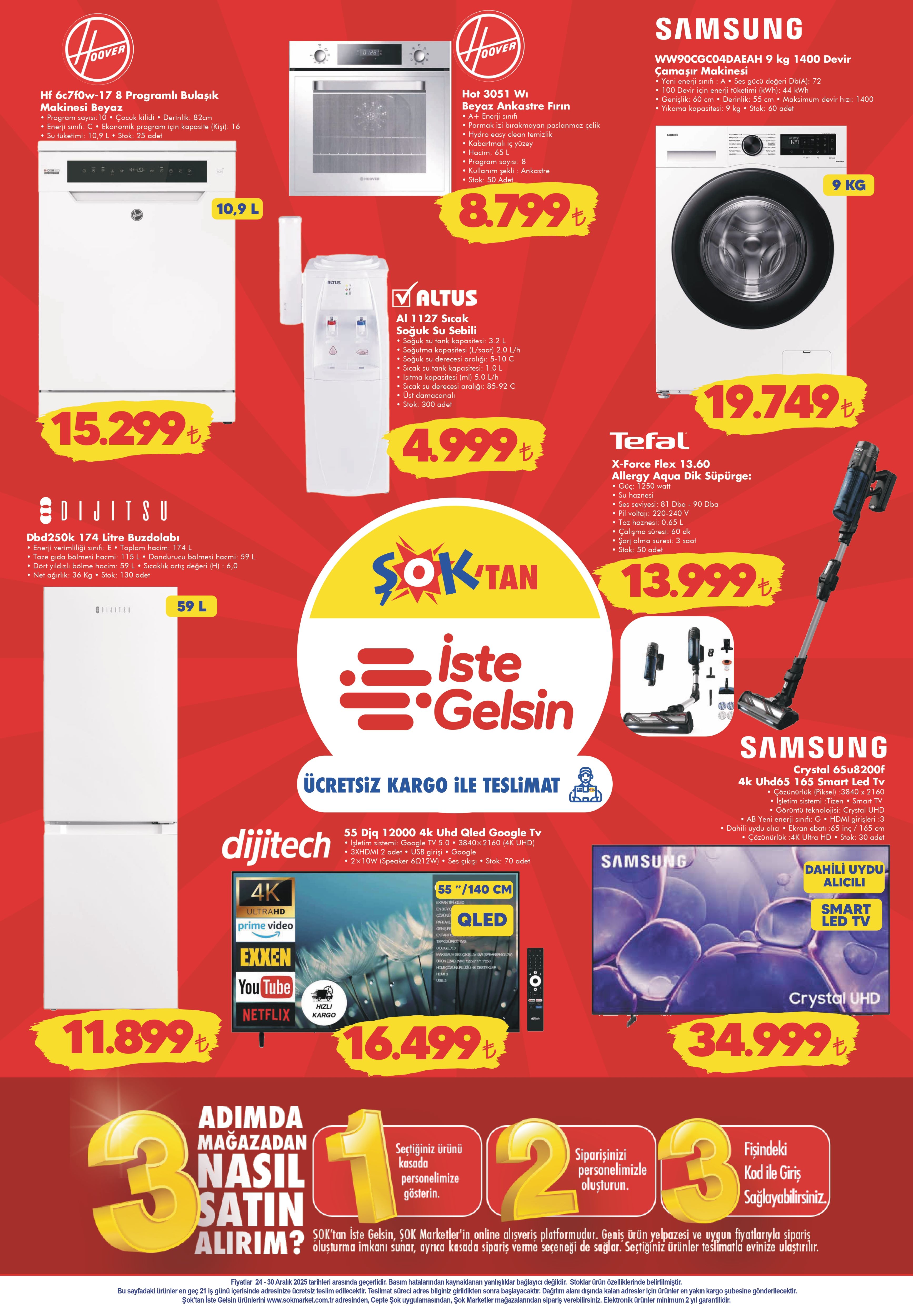 ŞOK Marketler Zinciri’nin 24-30 Aralık tarihleri arasında geçerli olacak yeni haftanın aktüel katalogları yayımlandı. Her hafta olduğu gibi bu hafta da elektronik ürünlerden ev tekstiline, küçük ev aletlerinden giyime kadar birçok üründe dikkat çeken indirimler yer alıyor.