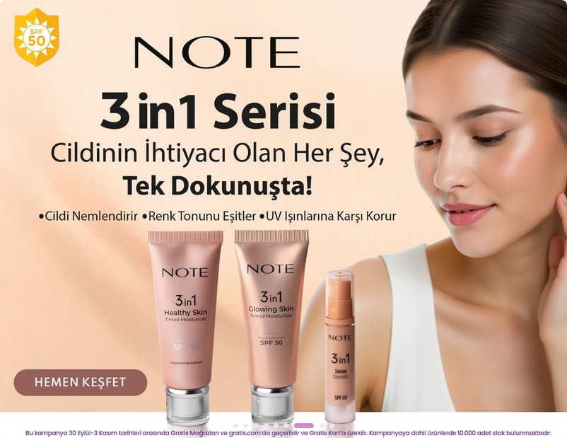 Gratis'in bu kampanyasında dikkat çeken bir diğer nokta ise, NOTE 3in1 Serisi ürünlerine özel sunulan uzun süreli indirim. Cildi nemlendirirken renk tonunu eşitleyen ve SPF 50 özelliğiyle UV ışınlarına karşı koruma sağlayan bu seri, makyaj ve cilt bakımı rutinini tek bir üründe birleştirmek isteyenlerin favorisi. NOTE Healthy Skin ve Glowing Skin serilerinden oluşan bu avantajlı fırsatlar, diğer ürünlerin aksine 3 Kasım 2025 tarihine kadar devam edecek.