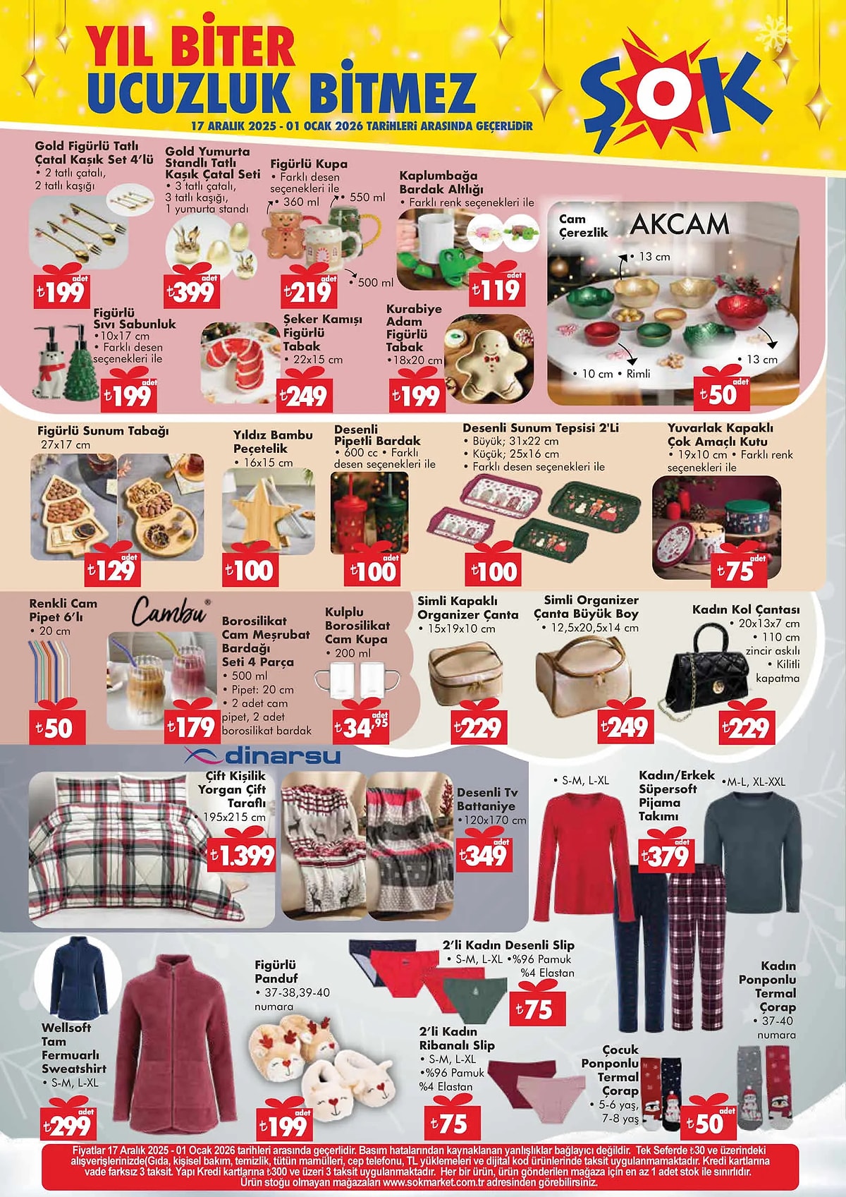 17 Aralık ŞOK aktüel ürünler kataloğu yayımlandı. Avantajlı alışveriş yapmak isteyenler için ŞOK market rafları bu hafta da dopdolu. Evden mutfağa, oyundan dekorasyona kadar pek çok ürün, ŞOK’ta bu hafta uygun fiyatlarla tüketicilerle buluşuyor.