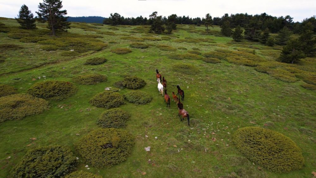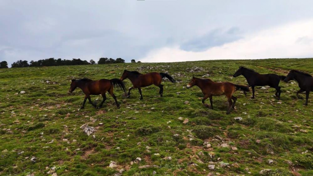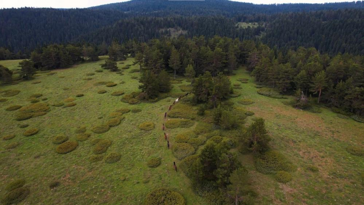 Kızılcahamam yaylalarında doğal yaşamın simgesi haline gelen yılkı atları, havaların ısınmasıyla birlikte yeniden yüzünü gösterdi. Dronla havadan görüntülenen atlar, doğaseverleri kendine hayran bıraktı.