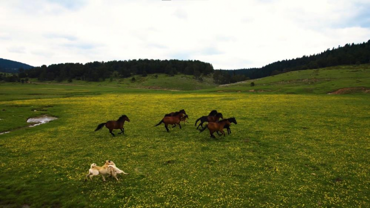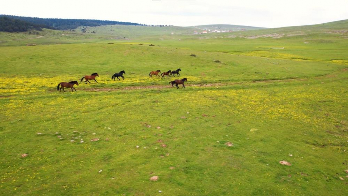 Ankara'nın Kızılcahamam ilçesinde, Sarıçam Yaylası ve çevresindeki geniş meralarda özgürce dolaşan yılkı atları, ilkbahar aylarının gelişiyle birlikte doğada görülmeye başlandı. Tamamen doğal ortamda, insan müdahalesi olmadan yaşamlarını sürdüren atlar, dron ile havadan görüntülenerek eşsiz karelere yansıdı.