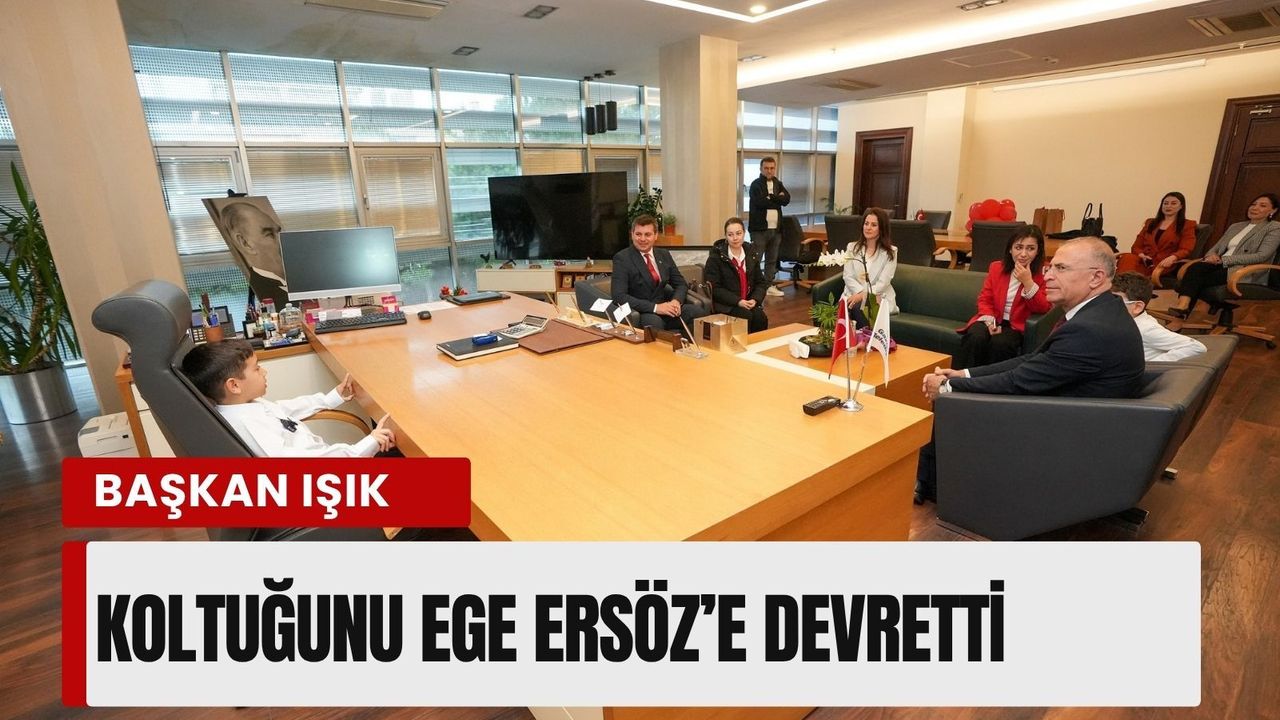 Gaziemir Belediye Başkanı Ünal Işık, 23 Nisan Ulusal Egemenlik ve Çocuk Bayramı kapsamında makamını ilkokul ikinci sınıf öğrencisi Ege Ersöz’e devretti. İTÜ Geliştirme Vakfı Okulları öğrencisi olan Ersöz, temsili görevinde belediye başkanlığı koltuğuna oturarak kentle ilgili düşüncelerini paylaştı.