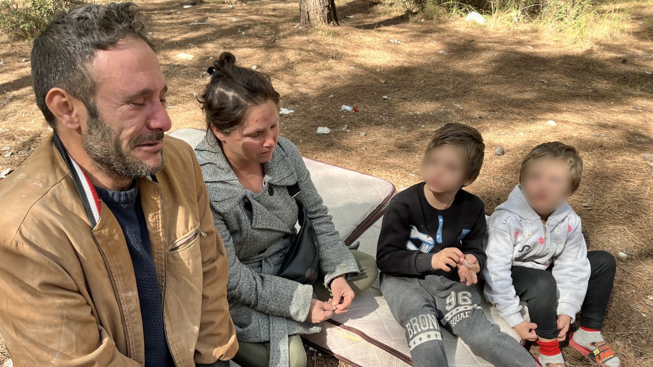 İzmir’in Gaziemir ilçesinde yaşayan Aydoğan ve Nazmiye Avcı çifti, evlerinden çıkarıldıktan sonra iki küçük çocuklarıyla birlikte ormanlık alana sığındı. Dört ve yedi yaşındaki çocuklarıyla döşeğin üzerinde yaşam mücadelesi veren aile, “Kendimiz için değil, çocuklarımız için kalacak bir yer istiyoruz” diyerek yetkililere ve hayırseverlere çağrıda bulundu.