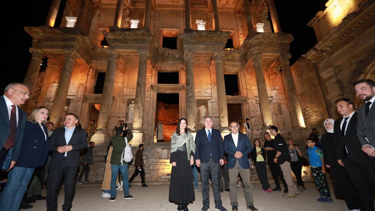 Efes Antik Kenti’nin İzmir ve Türkiye’nin yanı sıra uluslararası düzeyde önemli bir turizm destinasyonu olduğuna değinen Başkan Ceritoğlu Sengel; “Efes Antik Kenti Kültür ve Turizm Bakanlığı’nın başlattığı uygulama kapsamında artık gece saatlerinde de ziyaret edilebiliyor. Efes Antik Kenti’ni büyülü gece atmosferiyle ziyaretçilere açılması bizleri çok heyecanlandırıyor. Bu uygulama hem Efes Selçuk’un hem de Türkiye’nin turizmde sahip olduğu ivmenin daha yükseğe taşınması açısından büyük önem arz ediyor. Emeği geçen herkese teşekkür ediyor, ziyaretçi sayımızın yükseleceğini, Efes Selçuk’un tanıtımına katkı sağlayacağını düşündüğümüz bu projenin olumlu sonuçlarını hep birlikte deneyimlemeyi temenni ediyoruz” dedi.