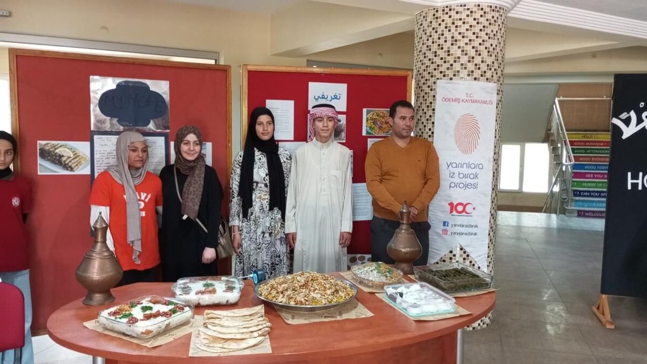 “Yarınlara İz Bırak Projesi kapsamında iki kültürün birleşmesini izleyeceğiniz bir etkinliğimiz var. Suriyeli misafir öğrencilerimizin ve ailelerinin katkılarıyla ve Ödemişimizin yemek kültürünün sunulduğu, iki kültürün yemek örnekleriyle birlikte müzik öğretmenimizin hazırladığı Mahalli Türkülerden bir örnekle programımızı bitireceğiz. Burada şunu belirtmek istedik. 10 yıldır aramızda olan Suriyeli göçmen misafir öğrencilerimizin nasıl kaynaştıklarını, yemek kültürlerini bizlere nasıl tanıttıklarına şahit olacaksınız. Burada aynı coğrafyayı Osmanlı’da 400 yıl paylaştığımız bir ülkenin bugün mirasları olarak Suriyeli çocuklar, aileler burada yemeklerinin olmazsa olmazı Kepse’yi, Fette’yi bir de içecek olan Medde var arkadaşlarımız anlatacaklar. Türk öğrencilerimiz de Sarma, Kısır ve Gelin Çantası’nı anlatacaklar. Yüzyıllarca beraber yaşadık, beraber aynı tadı paylaştık. Bugün kardeşçe burada beraberiz. Yarınlara İz Bırak, güzel bir iz bırakacak. Arapça Sokağı’nı hiç söylememe gerek yok zaten kendisi konuşuyor. Emeği geçen öğretmenlerimize ve velilerimize çok teşekkür ediyorum. Okulumuzun kültürüne katkı sunduğunuz için müteşekkirim.”