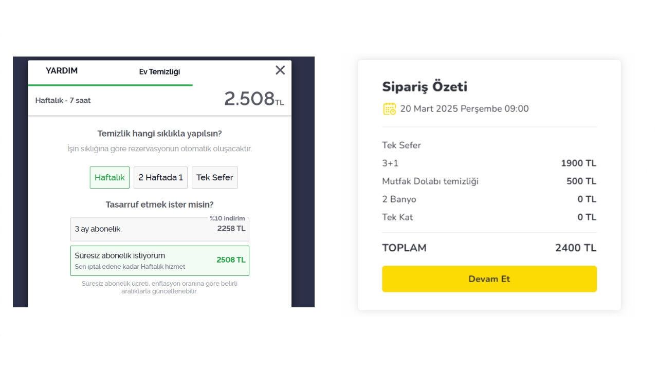 İnternet üzerinden hizmet veren platformlarda yer alan fiyatlar, 2400 TL ila 2500 TL arasında değişiyor. Yani günlük temizlikçi ücretleri, TÜİK’in işaret ettiği seviyenin neredeyse %60 üzerinde. Bu durum, özellikle düzenli temizlik hizmeti almak zorunda olan vatandaşlar için ciddi bir maliyet anlamına geliyor.
