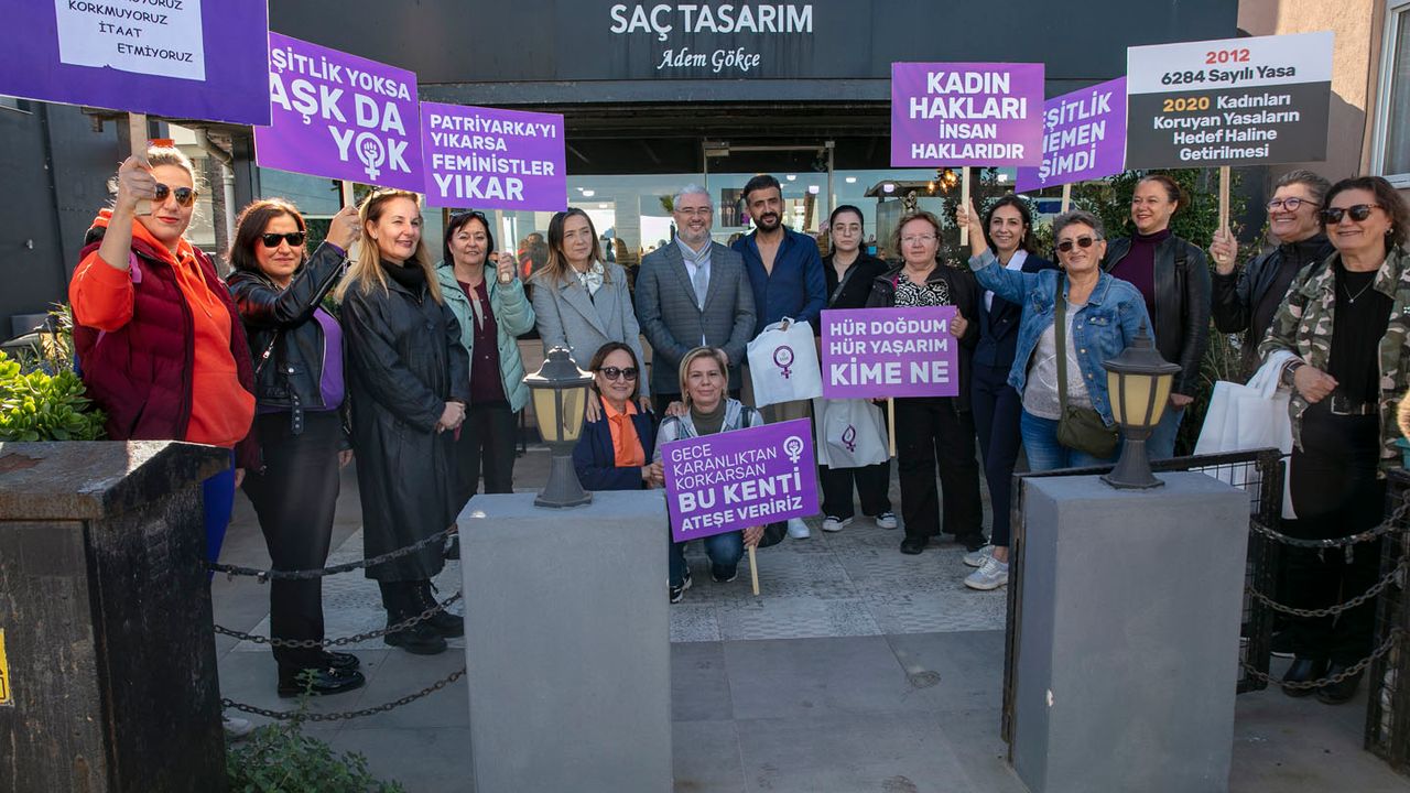 Güzelbahçe’de gerçekleştirilen etkinlik, kadınların dayanışma çağrısını bir kez daha görünür kıldı.