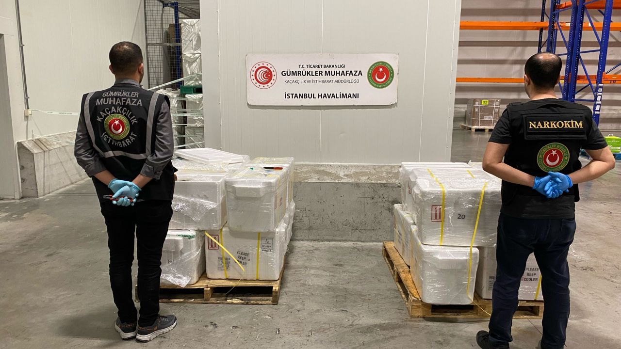Ticaret Bakanlığı Gümrükler Muhafaza Posta/Kargo NARKOKİM Ekipleri, İstanbul Havalimanı'nda gerçekleştirdiği operasyonla 455,2 kilogram kokain cinsi uyuşturucu maddeyi ele geçirdi.