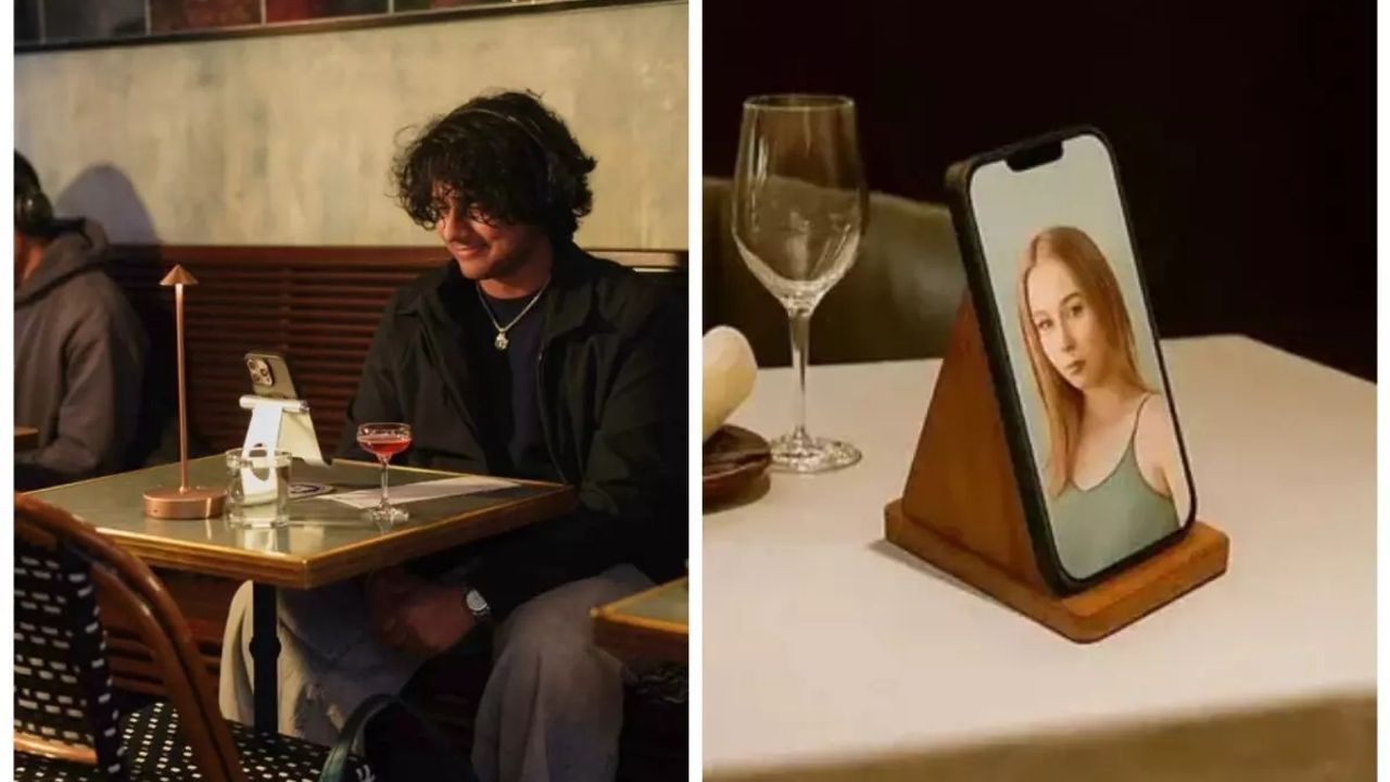 Organizatörlerin “dünyanın ilk yapay zekâ flört kafesi” olarak tanımladığı etkinlikte, her masada bir kişi ve karşısında telefon standı yer aldı.
