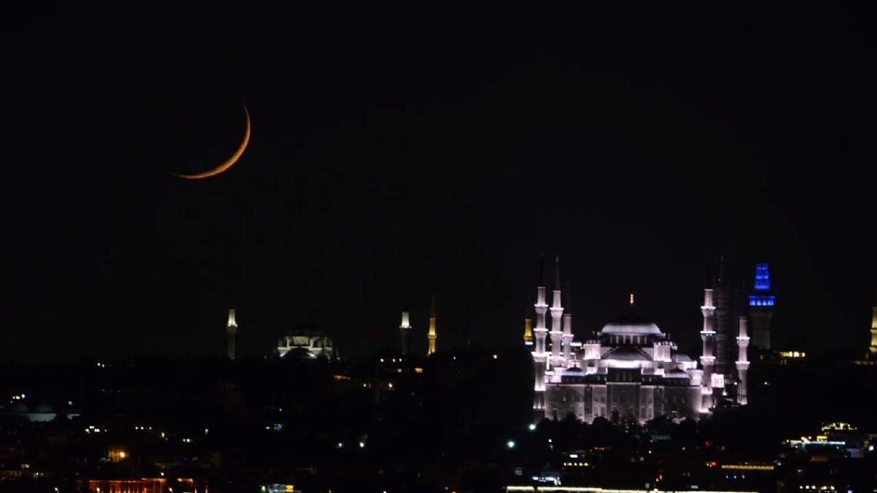 İstanbul’da dün gece ortaya çıkan hilal, Sultanahmet Camii, Ayasofya-i Kebîr Câmi-i Şerîfi ve Beyazıt Yangın Kulesi üzerinde eşsiz bir görüntü oluşturdu. Kameralara yansıyan Sultanahmet Camii ile hilal buluşması seyirlik bir görüntü oluşturdu. Hilalin, Sultanahmet Camii üzerinden batışı yaklaşık 5 dakika sürdü. İstanbul’un Kadıköy ilçesi sahilinde objektiflere yansıyan görüntü, görenleri hayran bıraktı.