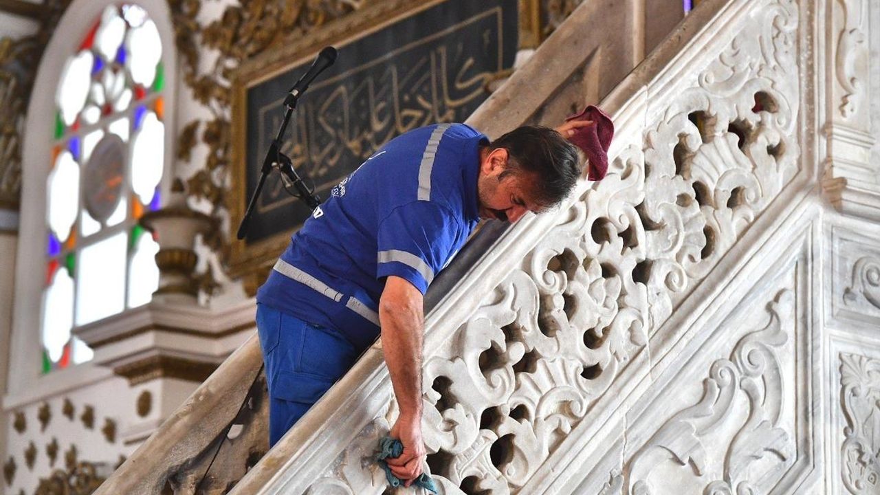 İzmir Büyükşehir Belediyesi, yaklaşan Kurban Bayramı öncesi ibadethanelerdeki temizlik çalışmalarına hız verdi. İZBETON bünyesindeki ekipler, camileri minberinden avizesine kadar baştan sona temizliyor.