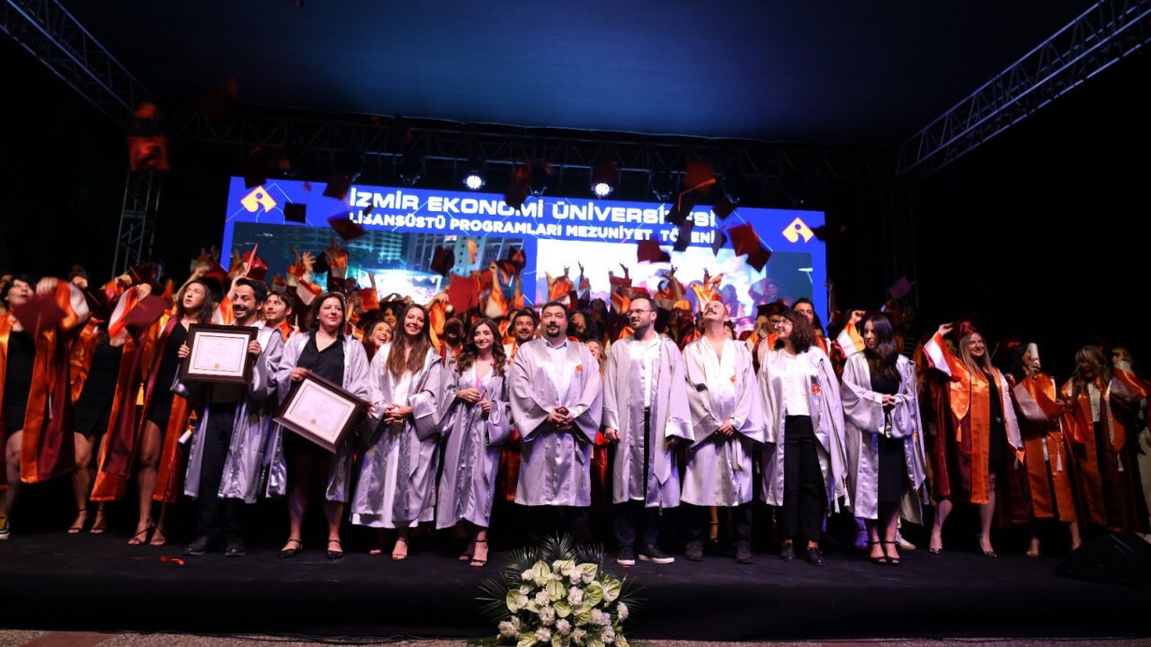 İzmir Ekonomi Üniversitesi (İEÜ), yüksek lisans ve doktora programlarını başarıyla tamamlayan 191 öğrencisini mezun etmenin gururunu yaşadı. Balçova'daki kampüste düzenlenen mezuniyet töreni, öğrencilere eşlik eden aileler ve akademisyenler sayesinde renkli görüntülere sahne oldu. Uzun süredir hayalini kurdukları diplomalarına kavuşan öğrenciler, cübbelerini giyip keplerini havaya fırlatarak mutluluklarını sevdikleriyle paylaştı.