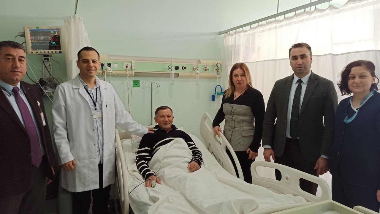 Hastaya, Aydın Devlet Hastanesi Başhekimi Prof. Dr. Gülnur Taşçı Bozbaş ve hastane yöneticileri geçmiş olsun ziyaretinde bulundu. Hekimlerin başarılı çalışmalarının artarak devam edeceğini belirten Başhekim Bozbaş, Kalp Damar Cerrahisi Uzmanı Hekimler ve emeği geçen personellere teşekkür etti.