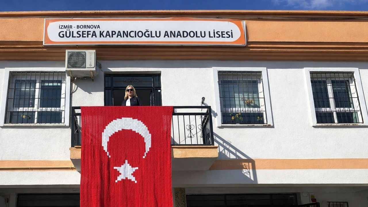 İzmir’in Bornova ilçesindeki Gülsefa Kapancıoğlu Anadolu Lisesi’nde yürütülen “Türk Bayrağı Örüyoruz” projesi, okul topluluğunu bir araya getiren özel bir çalışmayla tamamlandı. Haftalar süren ortak emeğin ardından ilmek ilmek hazırlanan dev Türk Bayrağı okul binasına asıldı.