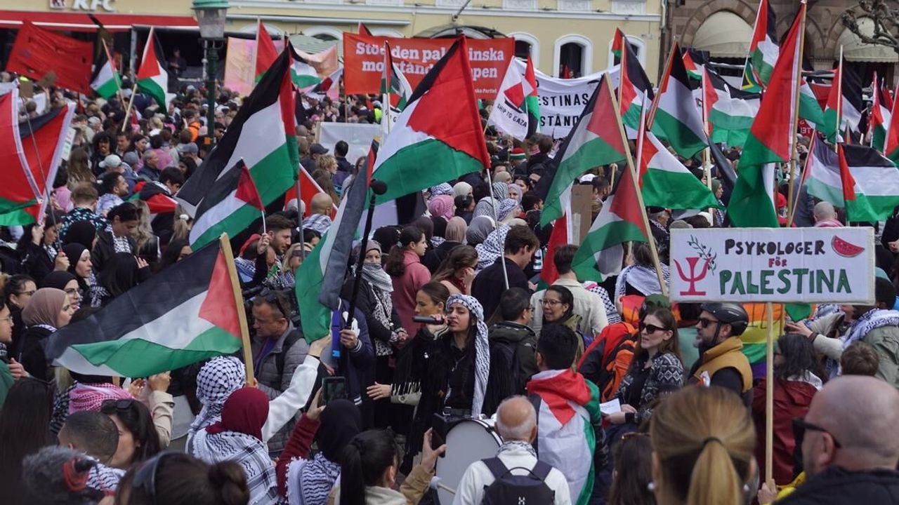 Gazze Şeridi’ne 7 Ekimde saldırı başlatan İsrail, dünya genelinde protesto ediliyor. Üniversitelerde öğrencilerin eylemleri devam ederken, İsrail’in Eurovision Şarkı Yarışması’nda yer alması da tepki çekti. Yarışmanın düzenlediği İsveç’in Malmö kentindeki Stortorget Meydanı’nda toplanan binlerce kişi, bugün gerçekleştirilecek ikinci yarı final öncesi eylem gerçekleştirdi. Soykırıma karşı pankartlar taşıyan protestocular, İsrail karşıtı sloganlar attı. Filistin bayrakları taşıyan kalabalık daha sonra meşale yakıp Malmö sokaklarında yürüyüş yaptı.