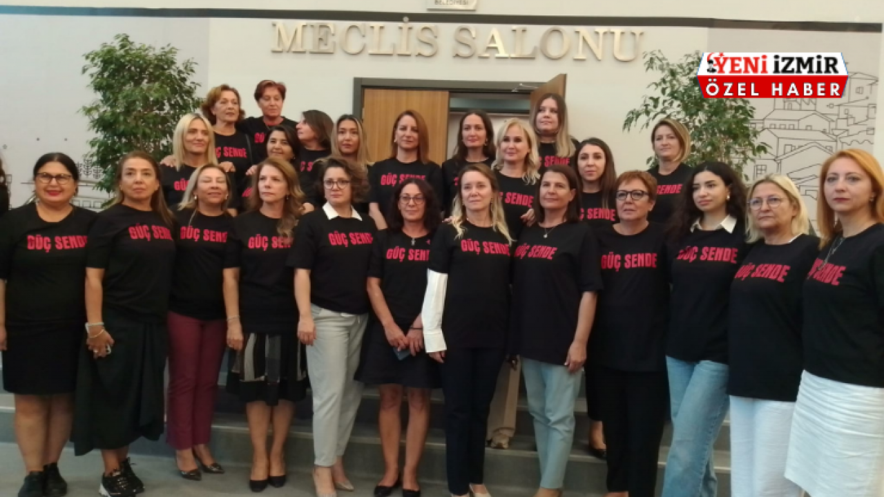 İzmir'in kadın belediye başkanları ve İzmir Büyükşehir Belediyesi'nin kadın meclis üyeleri, ekim ayı 2. meclis toplantısına üzerinde "Güç Sende ve Devrim Kadının İzinde" yazan kıyafetleri giyerek katıldılar.