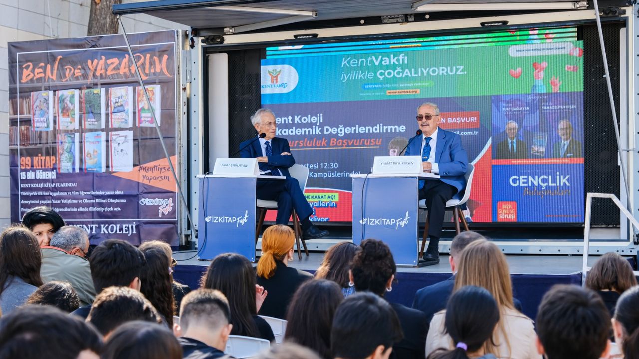 İzmir Büyükşehir Belediyesi’nin ev sahipliğinde, İZFAŞ ve TACT Fuarcılık iş birliğiyle Kültürpark’ta düzenlenen İZKİTAP – 6. İzmir Kitap Fuarı, unutulmaz bir buluşmaya sahne oldu. Etkinliğe katılan eski Kültür ve Turizm Bakanı Prof. Dr. Suat Çağlayan ile eski Eskişehir Büyükşehir Belediye Başkanı Prof. Dr. Yılmaz Büyükerşen, öğrencilerle keyifli bir sohbet gerçekleştirdi.