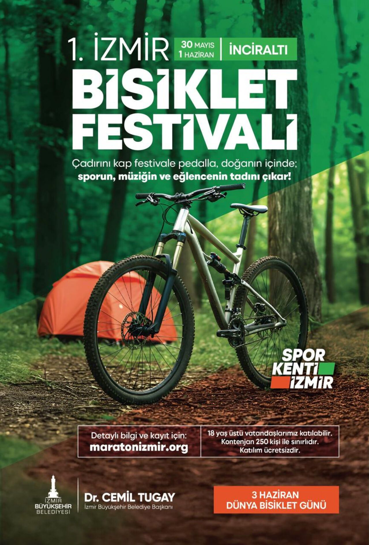 İzmir, bu yıl Dünya Bisiklet Günü’nü festival havasında kutlamaya hazırlanıyor. İzmir Büyükşehir Belediyesi’nin ilk kez düzenleyeceği 1. İzmir Bisiklet Festivali, bisiklet tutkunlarını 30 Mayıs – 1 Haziran tarihleri arasında İnciraltı Spor Tesisleri’nde bir araya getirecek.