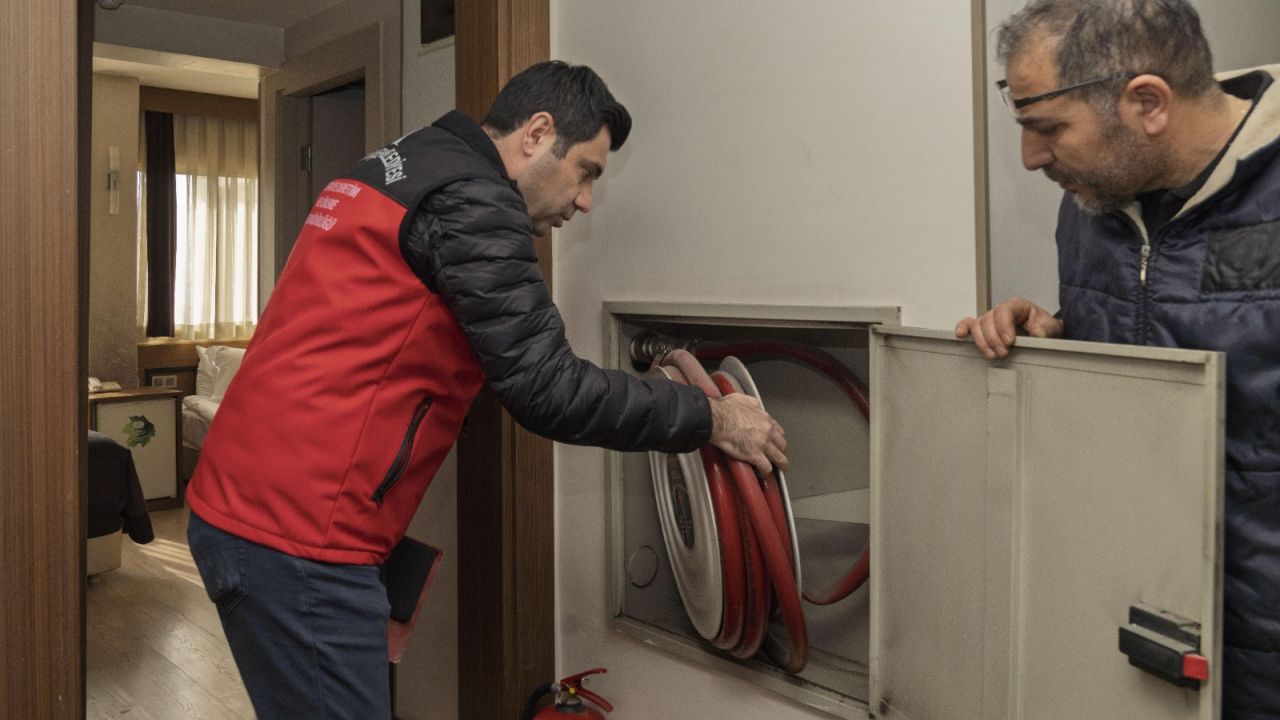 Proje İnceleme ve Denetim Amiri Mehmet Ekim ise otellerdeki denetimlerde, yangın merdivenleri ve acil çıkış kapılarının durumunun öncelikli kriterler arasında yer aldığını belirterek, “Bir otelin büyüklüğüne ve kapasitesine göre yangın merdiveni sayısı değişir. Örneğin, 20 kişilik bir otelde bir yangın merdiveni yeterliyken, daha büyük otellerde bu sayı artar” dedi.