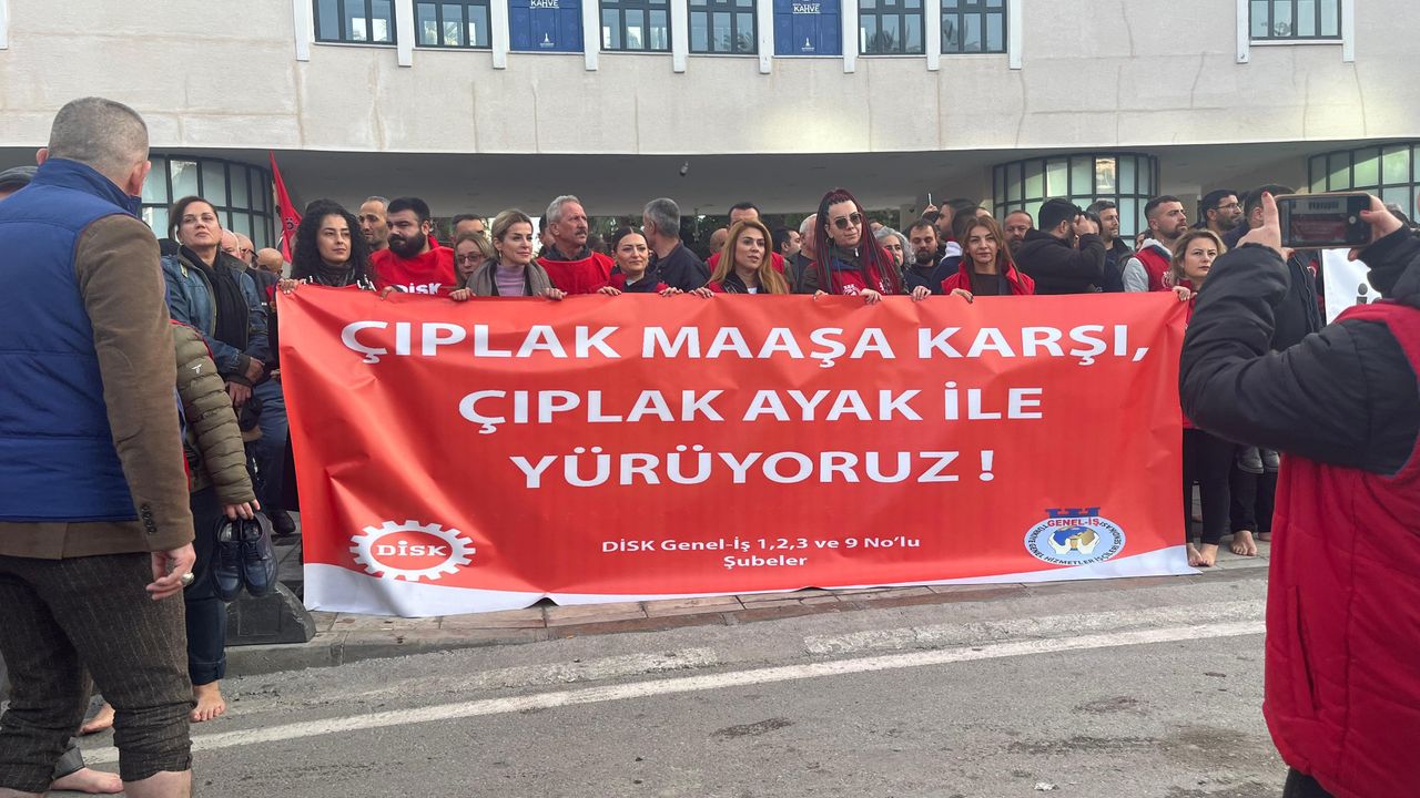 Eylemin üçüncü gününde belediye işçileri, şube yöneticileri, işyeri temsilcileri ve işten çıkarılan çalışanlarla birlikte Konak Pier’de toplanarak Basmane Fuar Kapısı’na 'çıplak ayaklı yürüyüş' gerçekleştirdi.