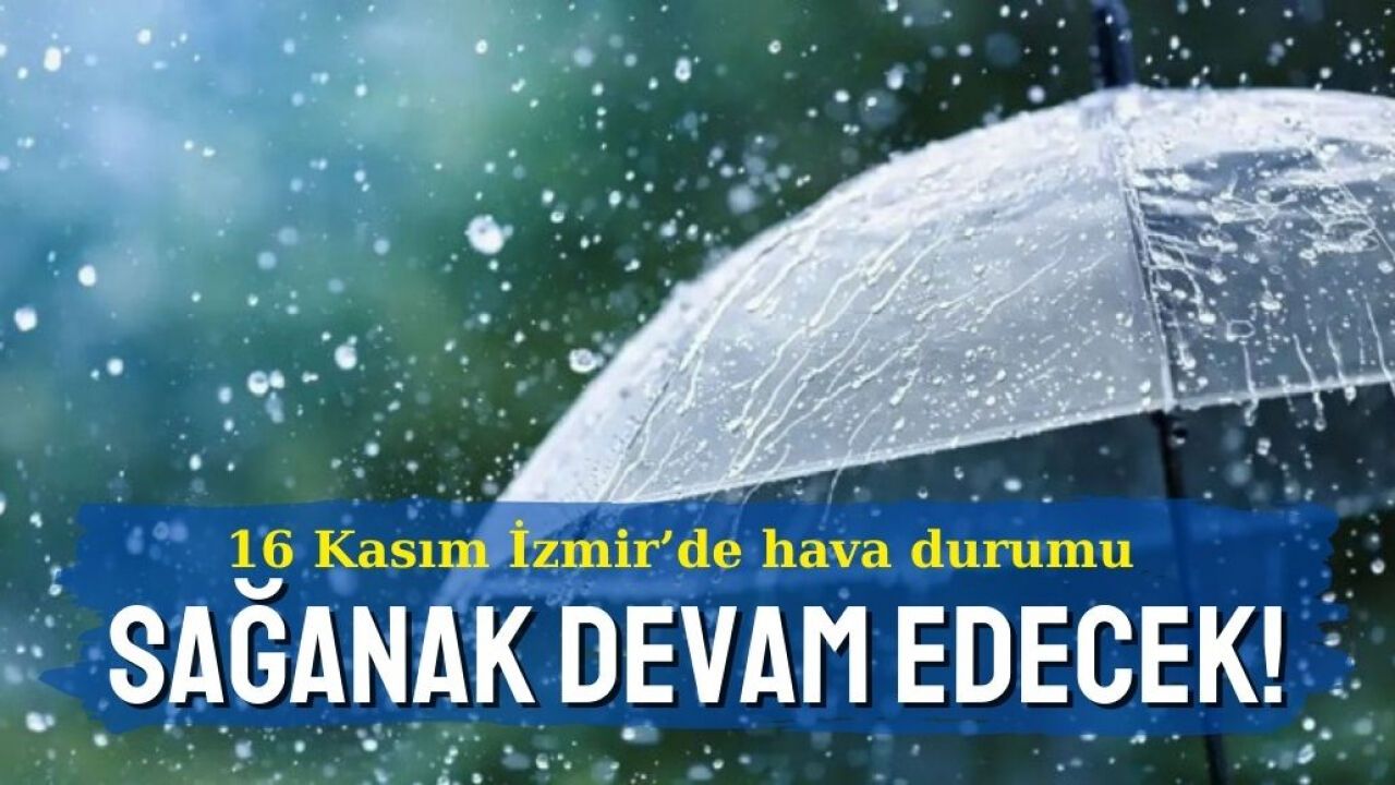 İzmir'de 16 Kasım Cumartesi günü için yapılan hava durumu tahminlerine göre, kent genelinde şiddetli sağanak yağış bekleniyor. Sıcaklık ise gün boyunca 12°C ile 17°C arasında değişecek.