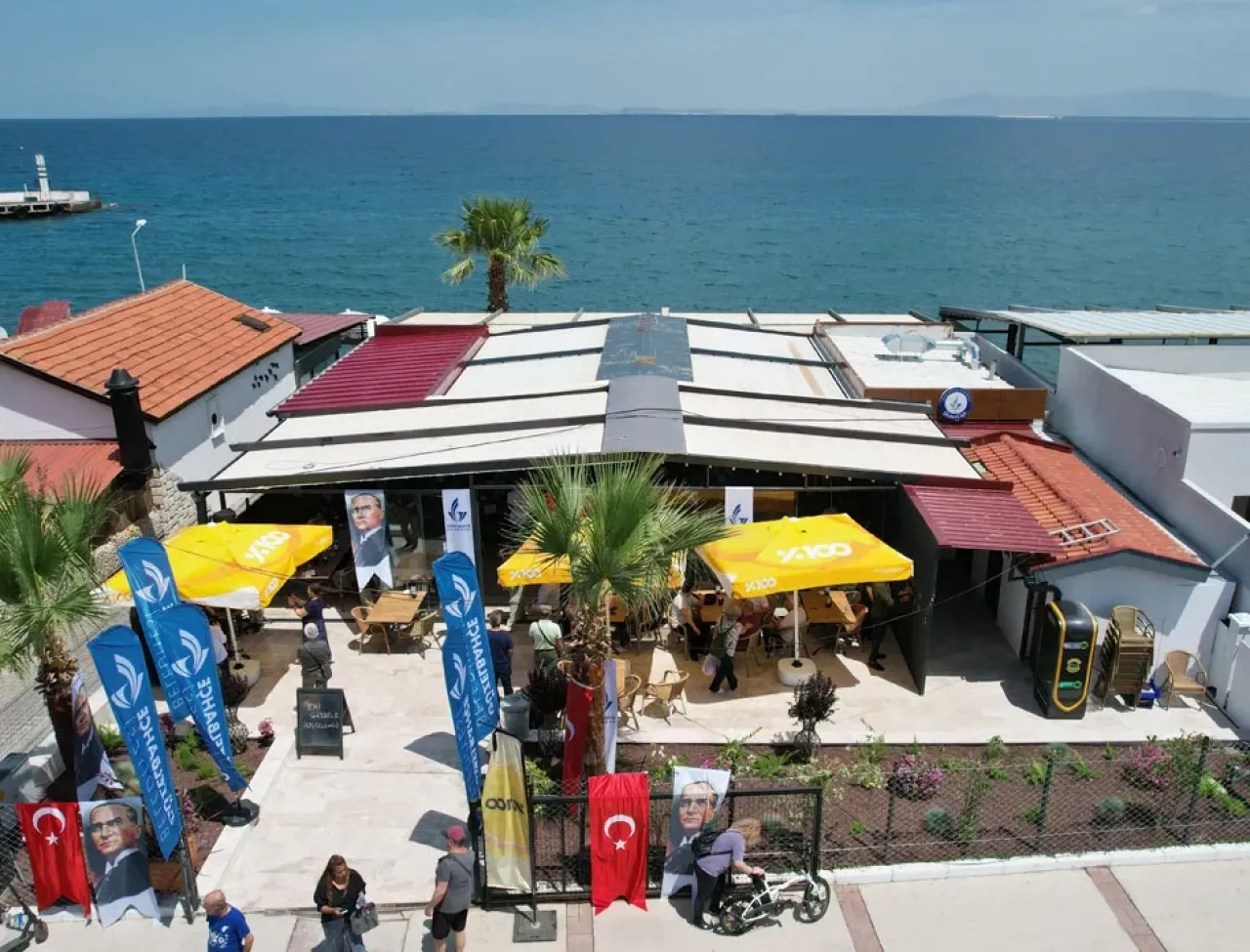 Güzelbahçe Belediyesi’ne ait olan bu işletme, hem plaj hem kafe olarak hizmet veriyor.