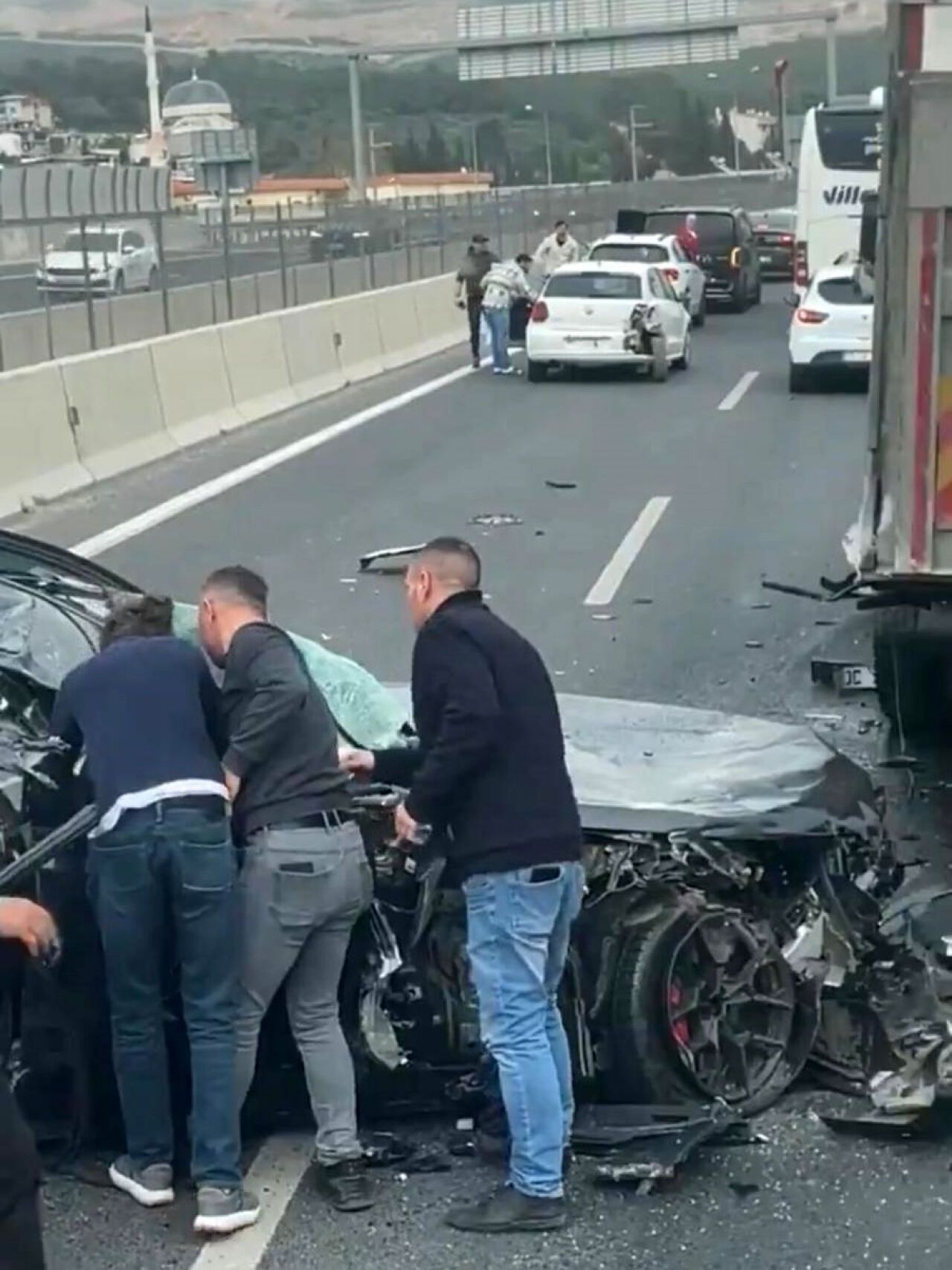 Kazanın etkisiyle otomobil büyük hasar aldı. Araçta yolcu koltuğunda bulunan bir kişi içeride sıkıştı. Şoku atlatan sürücü, diğer sürücülerin yardımıyla arkadaşını araçtan çıkardı. O anlar çevrede büyük panik yarattı.