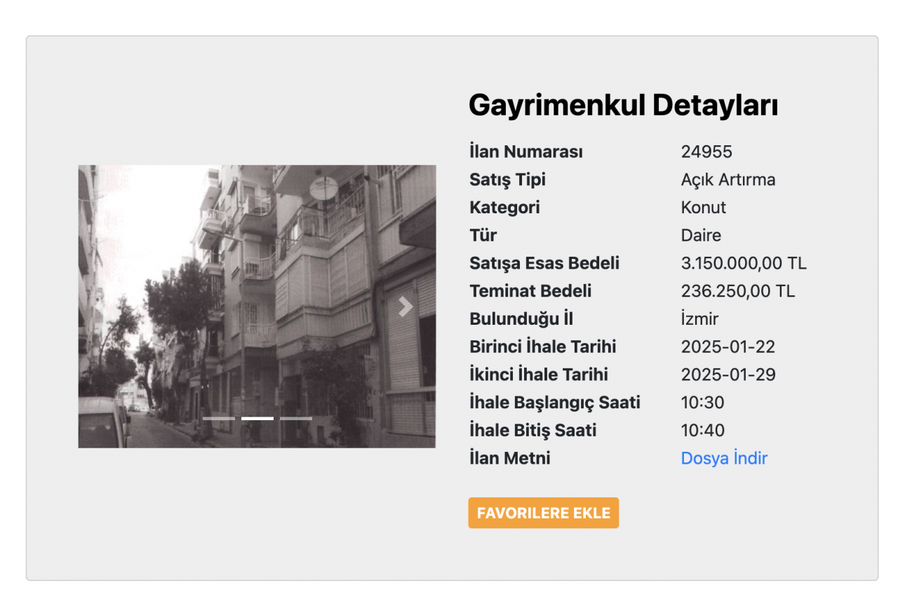 Sosyal Güvenlik Kurumu (SGK) internet sitesi üzerinden hacizli konut duyurularında bulunuyor. İzmir'de hacizli konut almak isteyenler için önemli bir gelişme yaşandı. Karşıyaka ilçesinde bulunan daire açık arttırma ile satışa konuldu. Söz konusu dairenin satışa esas bedeli 3.150.000,00 TL olarak açıklandı. Teminat bedeli ise 236.250,00 TL olarak bildirildi. Daireyi almak isteyenler için birinci ihale tarihi 22 Ocak, ikinci ihale tarihi ise 29 Ocak 2025 olarak kaydedildi.