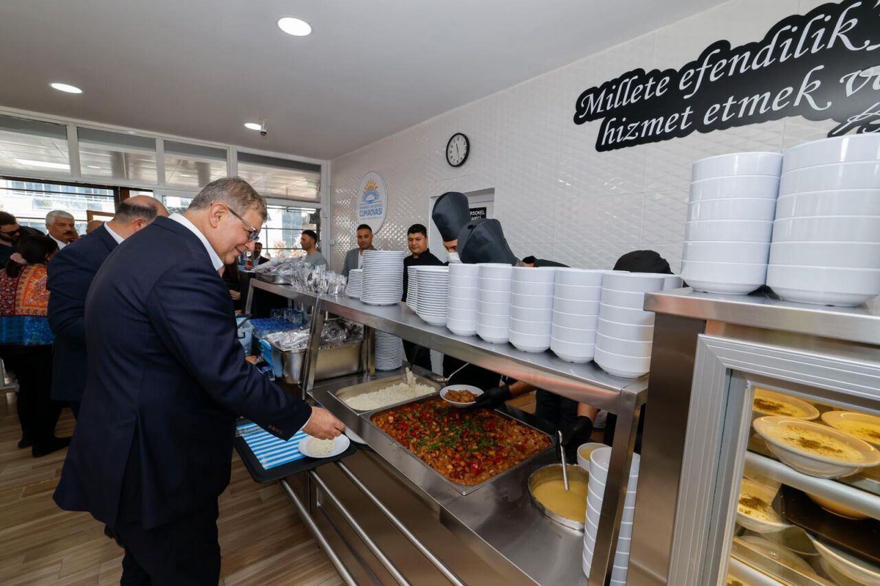Menderes Belediye Başkanı İlkay Çiçek’in ev sahipliğinde gerçekleştirilen açılışa CHP İzmir Milletvekili Yüksel Taşkın, CHP İzmir İl Başkanı Şenol Aslanoğlu, ilçe belediye başkanları, muhtarlar ve vatandaşlar katıldı. Belediye iştiraki Cumaovası AŞ tarafından işletilen lokantada ilk etapta günlük bin kişilik yemek çıkarılacak. Üç çeşit yemek, ekmek ve su 90 TL’den halka sunulacak. İlk günün menüsünde mercimek çorbası, tas kebabı, pirinç pilavı ve cacık yer aldı.