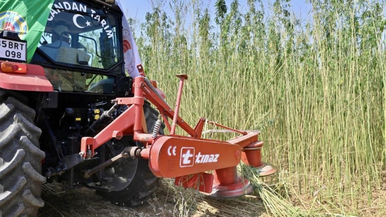 İzmir'in Aliağa ilçesindeki Helvacı Mahallesi'nde, lif ve tohum üretimi amacıyla ilk kez izinli ve kontrollü şekilde ekimi yapılan kenevirlerin hasadı tamamlandı.