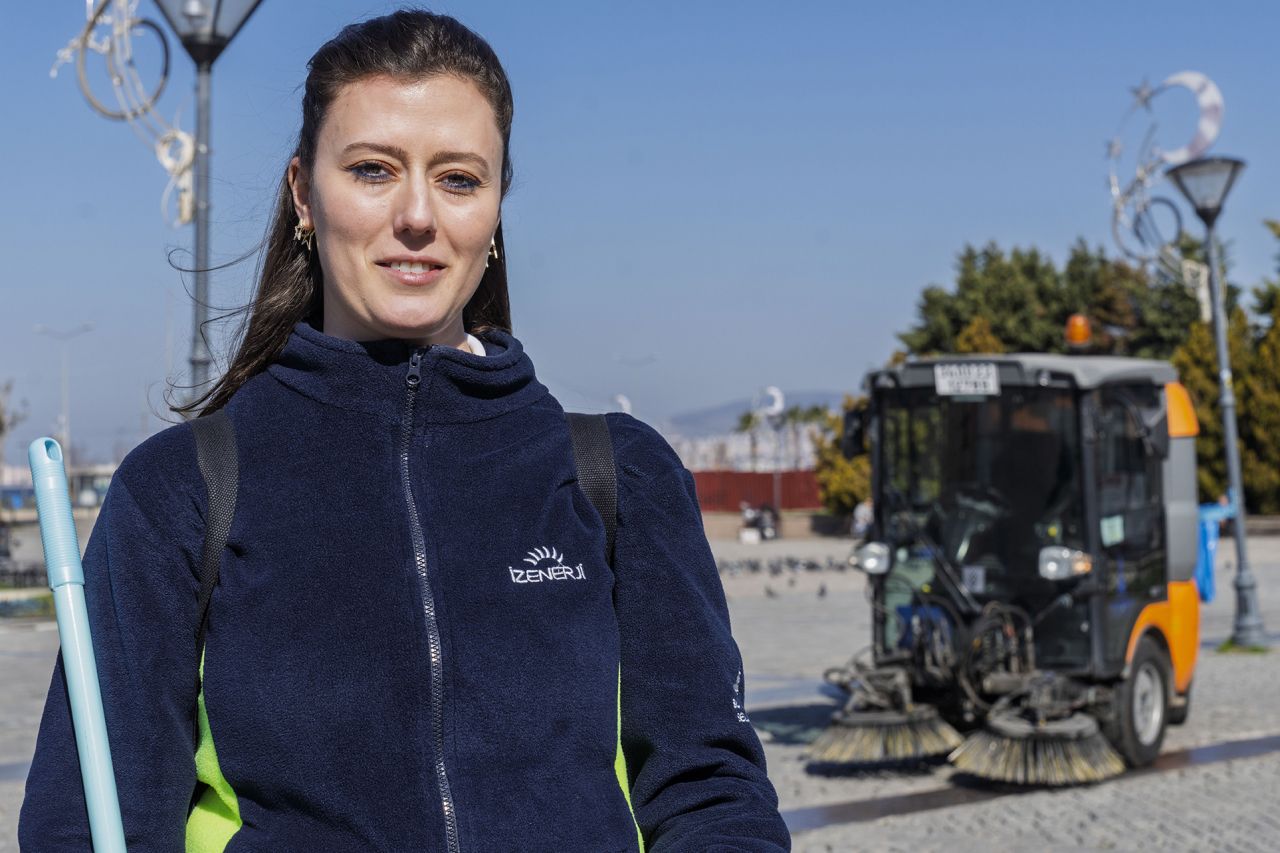İklim Değişikliği ve Sıfır Atık Dairesi Başkanlığı Kent Temizliği Şube Müdürlüğü Konak 1 Bölge Amiri Özlem Pelivan, temizlikte kadın hassasiyetinin fark yarattığını vurgulayarak, "Sokakları, evimizi temizler gibi temizliyoruz. Ancak herkesin daha duyarlı olması şart. Yerlere çöp atılmadığında işlerimiz daha verimli hale gelir" ifadelerini kullandı.