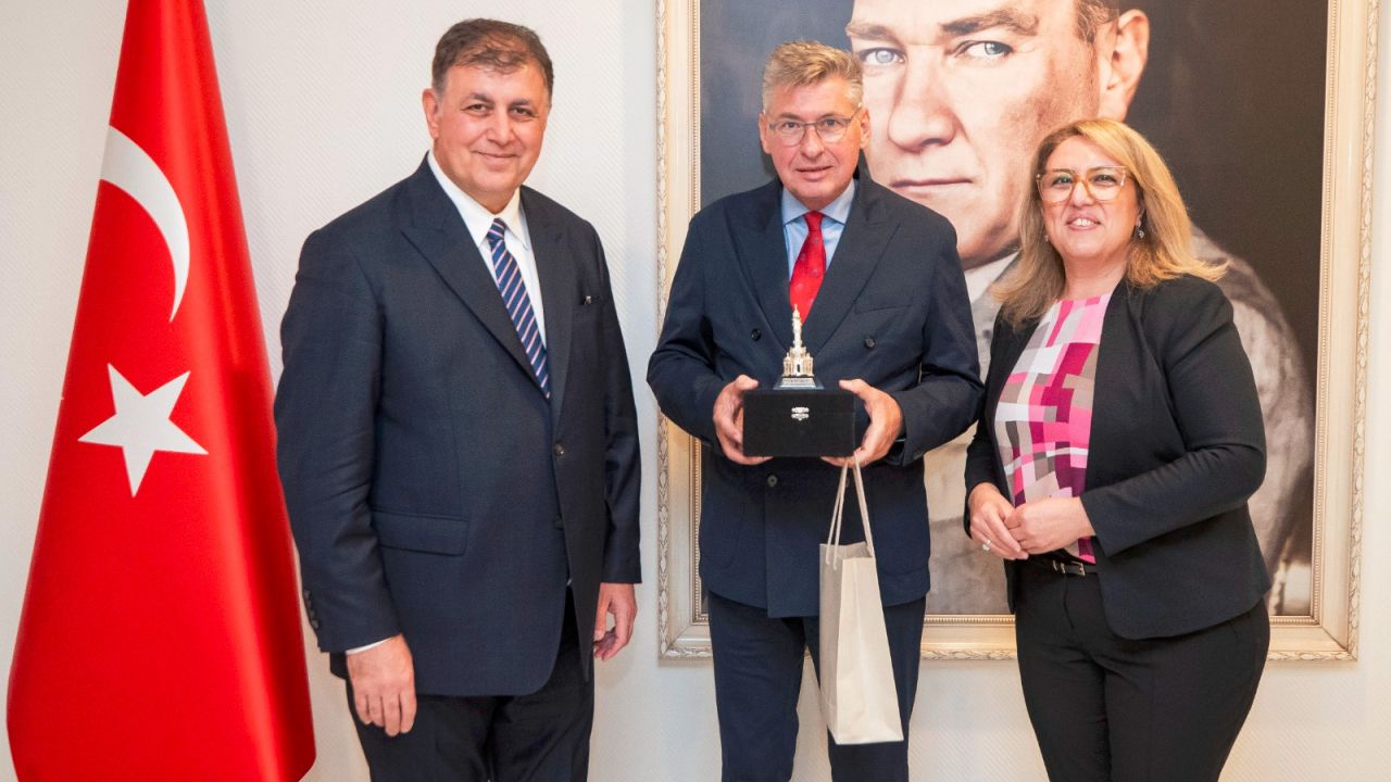 İzmir Büyükşehir Belediye Başkanı Dr. Cemil Tugay, kardeş şehir Bremen'in İmar, Ulaşım ve Kentsel Gelişim Senatörü Özlem Ünsal ile Almanya'nın İzmir Başkonsolosu Ralf Schröer ve beraberindeki heyeti kabul etti. İki şehir arasındaki iş birliğini güçlendirmek için atılacak adımların konuşulduğu toplantıda, ilişkilerin büyüyerek devam etmesine vurgu yapıldı.