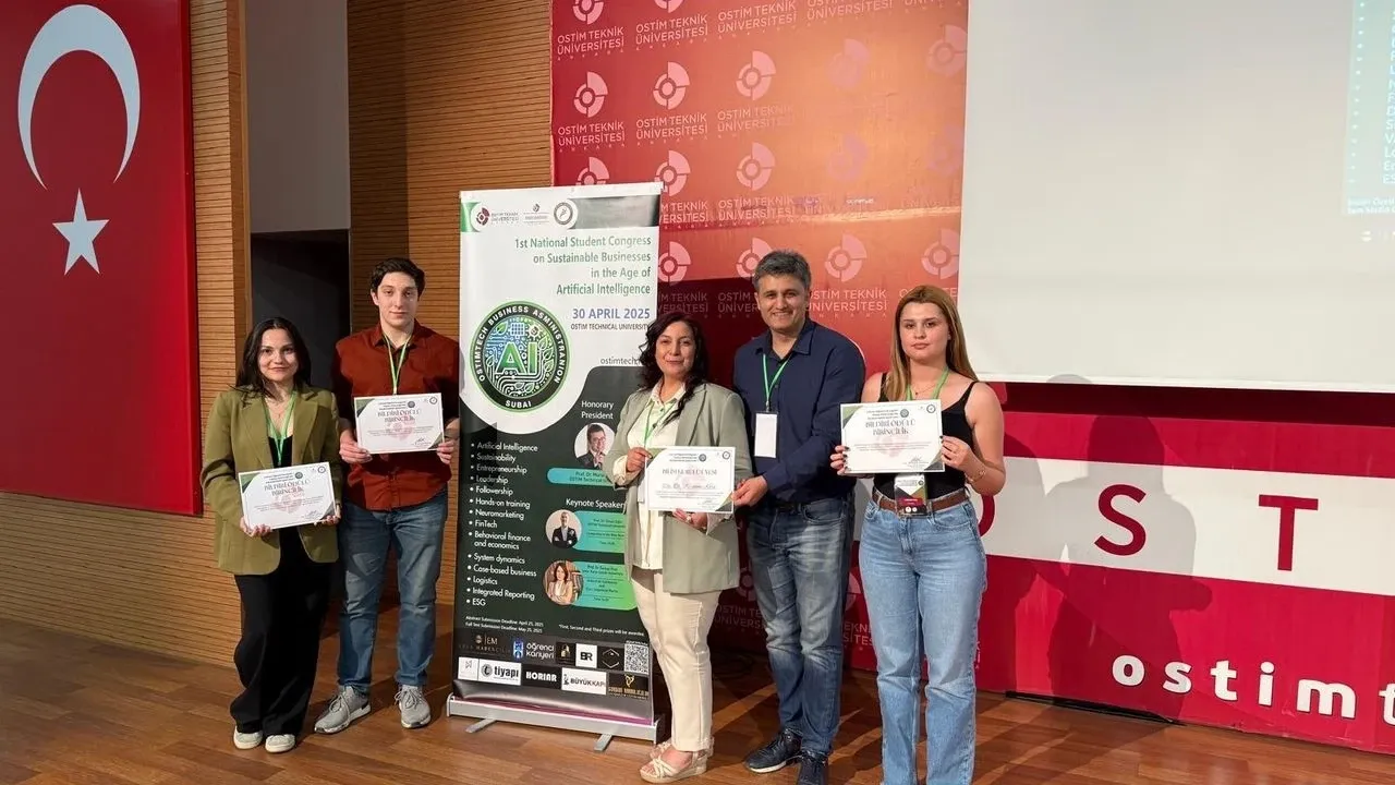 Kongrede dikkat çeken projelerden biri, İzmir Demokrasi Üniversitesi İngilizce İşletme Bölümü öğrencilerine aitti. Merve Durgun, Yağmur Koç, Toğrul Hüseynov ve Mert Araz’dan oluşan ekip, geliştirdikleri yapay zeka tabanlı karar destek sistemiyle jüriyi etkileyerek birincilik ödülüne layık görüldü.