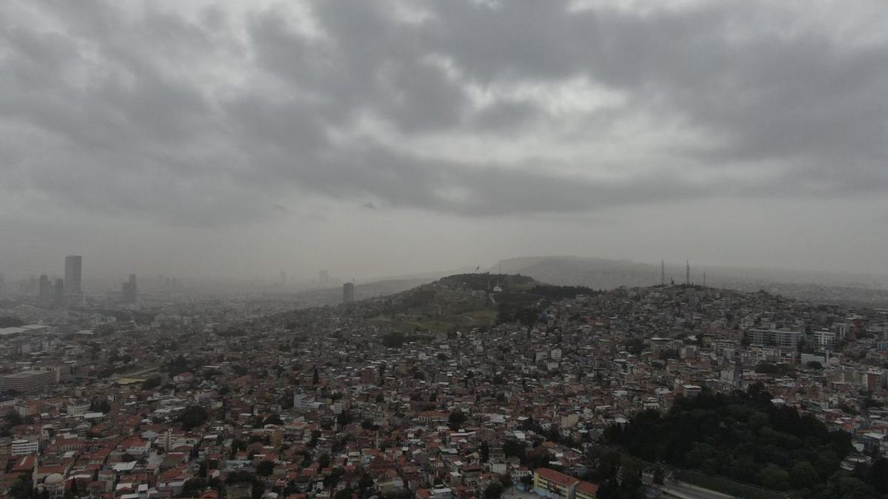 Meteoroloji Genel Müdürlüğü tarafından yapılan uyarı sonrası, Kuzey Afrika üzerinden gelen çöl tozu bulutu İzmir’de de etkisini gösteriyor. Gece saatlerinde de etkili olan çöl tozu bulutunun kentte oluşturduğu etki, günün ilk ışıklarıyla beraber gün yüzüne çıktı. Vatandaşlar kentin iki yakasını görmekte güçlük çekerken, adeta sisi andıran fakat görüş mesafesini azaltan çöl tozu bulutu havadan da görüntülendi.