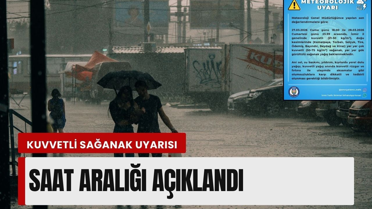 Yapılan açıklamada, İzmir genelinde yağışların kuvvetli (21-50 kg/m²) olacağı, doğu kesimlerinde ise yer yer çok kuvvetli (50-75 kg/m²) seviyelerine ulaşabileceği bildirildi. Yağışların zaman zaman gök gürültülü sağanak şeklinde etkili olacağı ifade edildi.