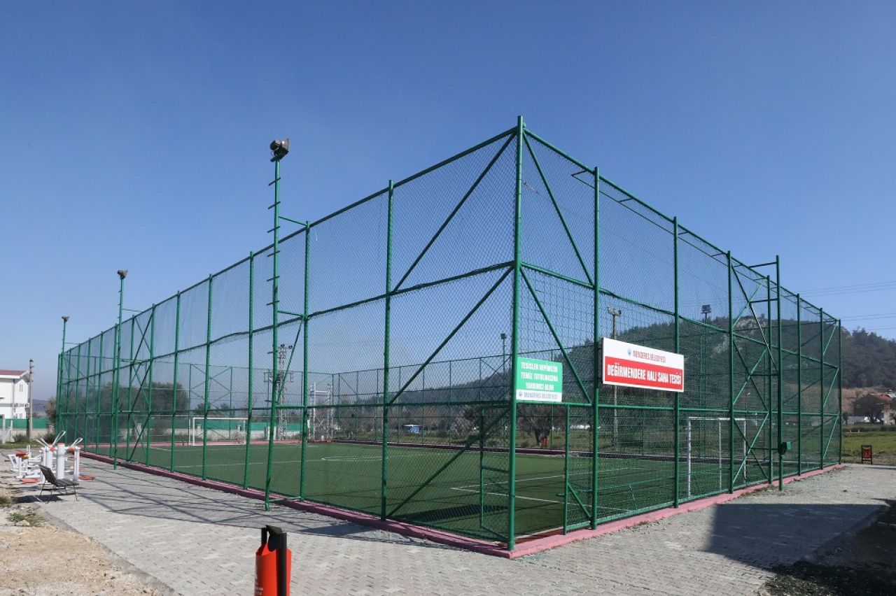 Değirmendere Halı Saha Tesisinde, zeminden çatılara kadar her ayrıntı titizlikle gözden geçirildi. Yenilenen halı saha zemini, çatı filesi, kale direkleri ve tellerin yanı sıra, tesisin iç mekanlarında da düzenlemeler yapıldı. Ayrıca, çevre düzenlemesi ile yolun düzeltilmesi sağlandı ve vatandaşların kullanımına sunulmak üzere yeni spor aletleri yerleştirildi.