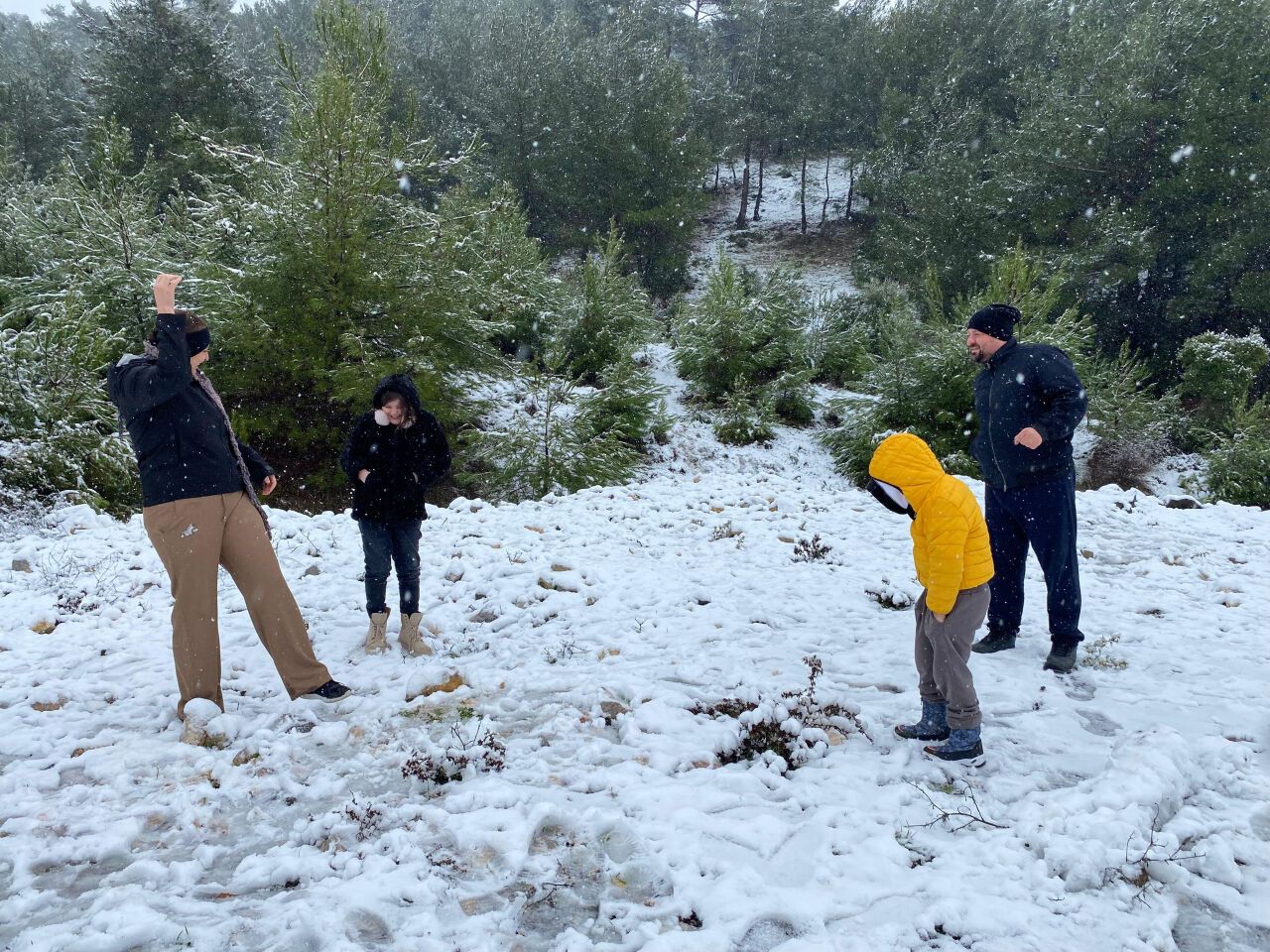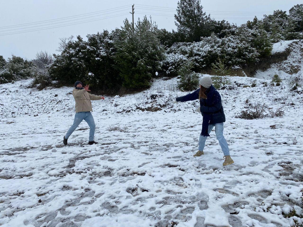 Aslen Ukraynalı olan Maksim Dotsenko ve Yuliya Mikitenko çifti, kar yağışını duyunca soluğu Beşyol Mahallesi’nde aldı. Çift, kar manzaralarının kendilerini memleketlerindeki soğuk kış günlerine götürdüğünü belirtti. Maksim Dotsenko, “İzmir’de yaşayan Ukraynalılar olarak kar yağışını çok özlüyoruz. Bugün çocukluğumuzun havasını soluyoruz” dedi. Yuliya Mikitenko ise “Burada kar topu oynayarak memleket hasretimizi bir nebze gideriyoruz” diye konuştu.