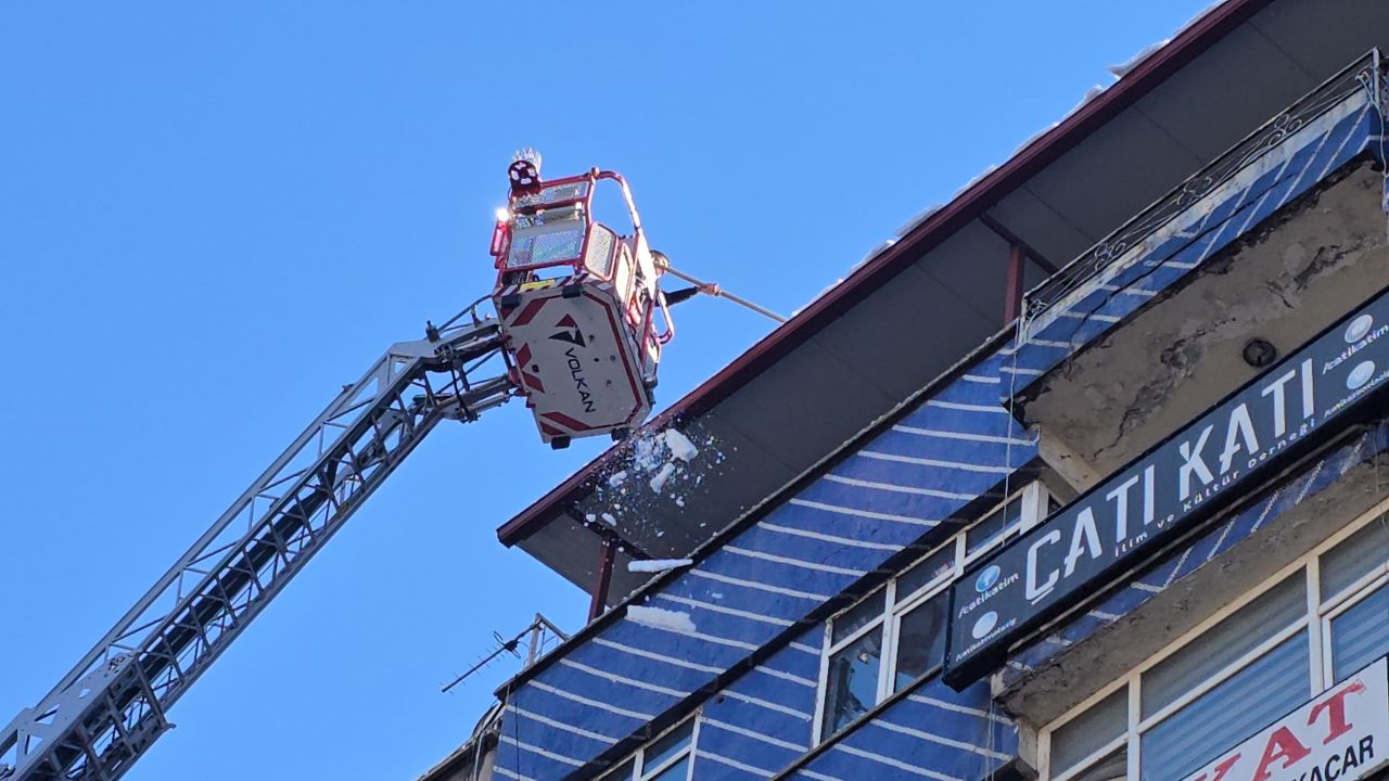 Özellikle insan yoğunluğunun fazla olduğu caddelerde çalışmalarını yoğunlaştıran ekipler, vatandaşlardan gelen talepler üzerine de harekete geçiyor. Gazi Caddesi'ndeki bir binanın çatısına merdivenli araçla ulaşan itfaiye ekipleri, kürekler ve diğer ekipmanlarla kar ve buz kütlelerini güvenli bir şekilde yere indiriyor. Çalışmalar sırasında çevredeki yayaların güvenliği için çeşitli önlemler alınarak risklerin minimuma indirilmesi sağlanıyor.