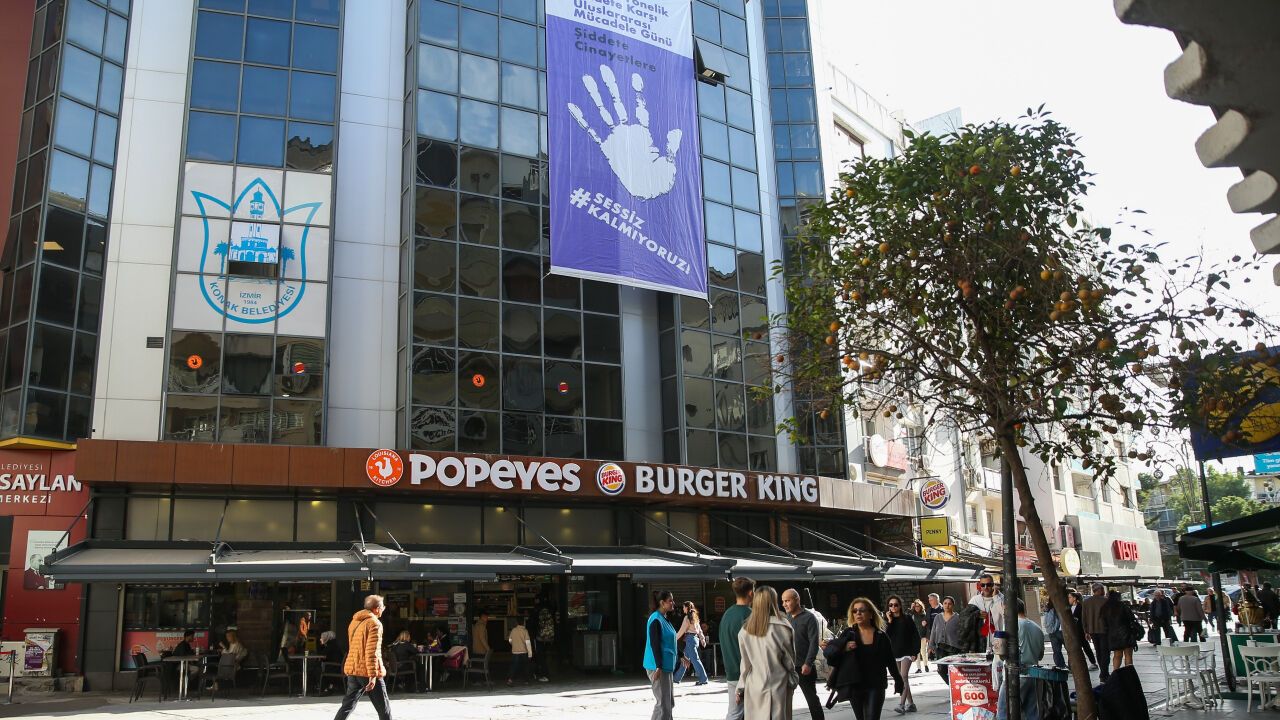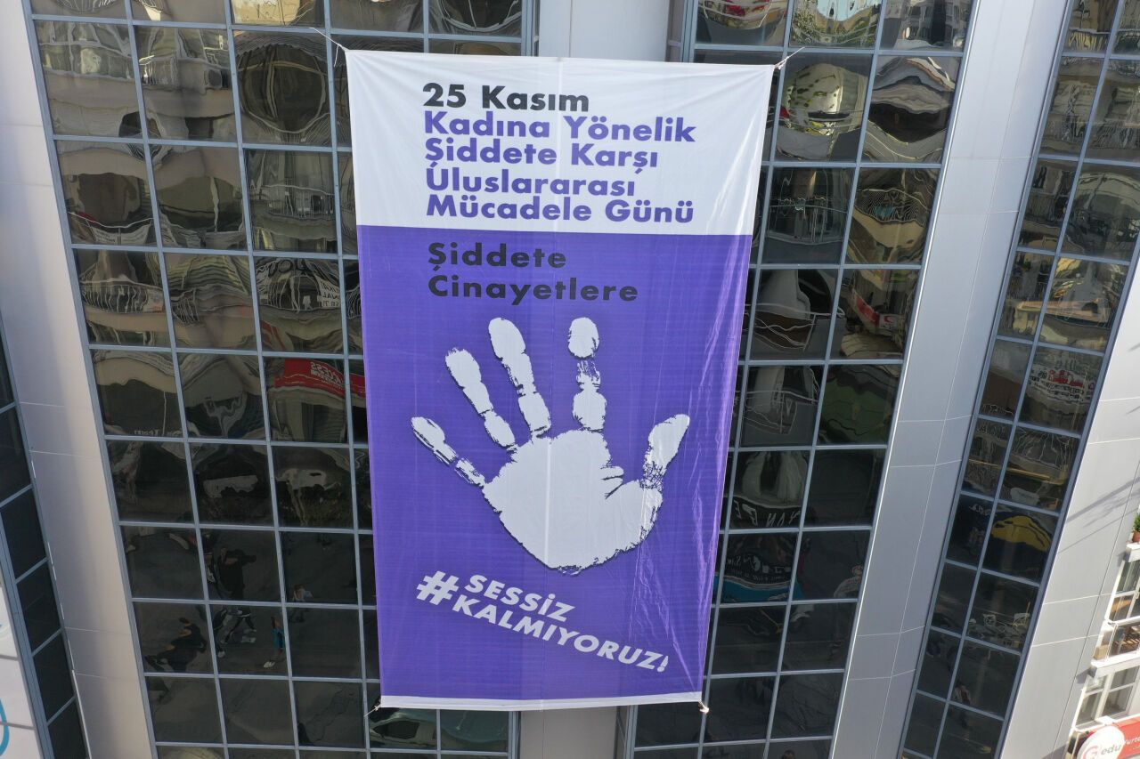 Konak Belediyesi, 25 Kasım'ın anlam ve önemine dikkat çekmek için Kıbrıs Şehitleri Caddesi'nde bulunan Türkan Saylan Kültür Merkezi'ne, üzerinde "Şiddete Cinayetlere Sessiz Kalmıyoruz" yazılı dev bir afiş astı. Mor zemin üzerine tasarlanan bu afiş, kadına şiddetle mücadele eden kadın hareketinin sembol rengine vurgu yaparak toplumsal farkındalık yaratmayı amaçlıyor. Kasım ayı boyunca asılı kalacak olan afiş, İzmir halkının dikkatini çekti.