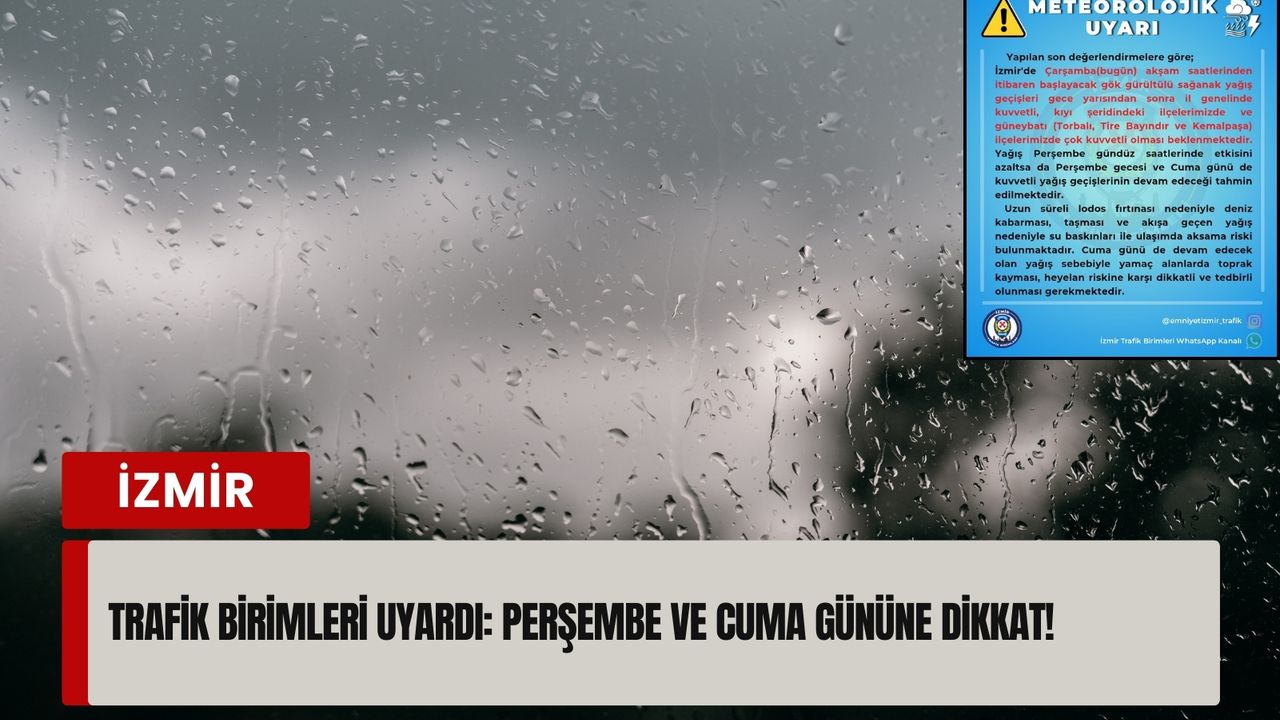 İzmir Trafik Birimleri tarafından paylaşılan meteorolojik değerlendirmeye göre, kent genelinde yağışlı sistem birkaç gün boyunca aralıklarla etkili olacak.