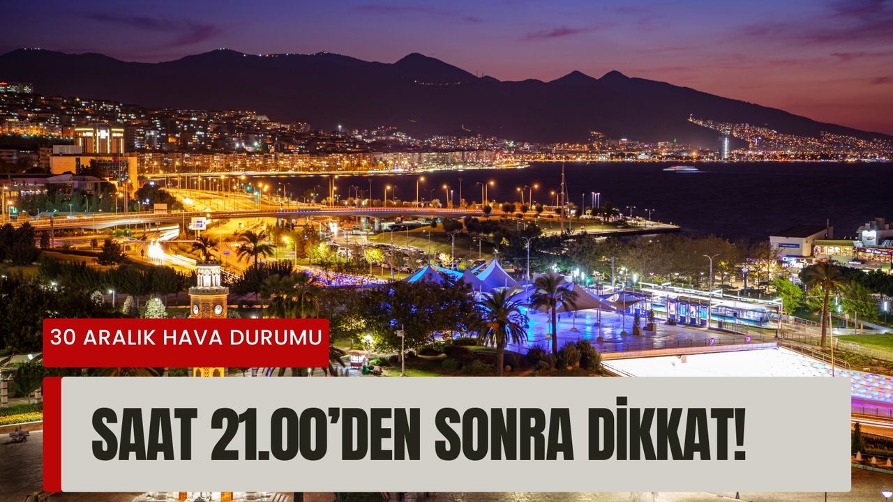 İzmir’de yılın son günlerine girerken 30 Aralık Salı günü için meteorolojik verilere göre gün boyu parçalı bulutlu ve açık bir hava hâkim olacak. Akşam saatlerinde ise kısa süreli yağış bekleniyor.