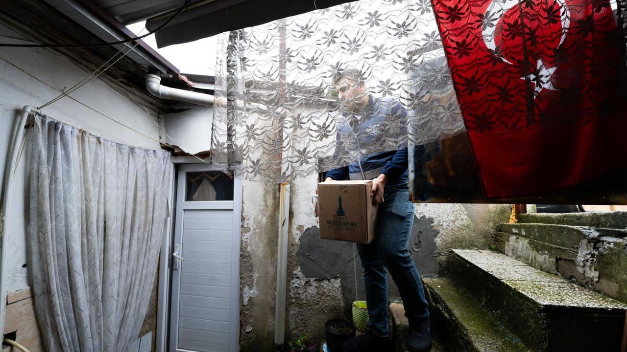İzmir Büyükşehir Belediyesi’nin hanelere teslim ettiği paket içinde mercimek, pirinç, kuru fasulye, nohut, makarna, bulgur, salça, un, sıvı yağ, tuz, çay ve şeker yer aldı.