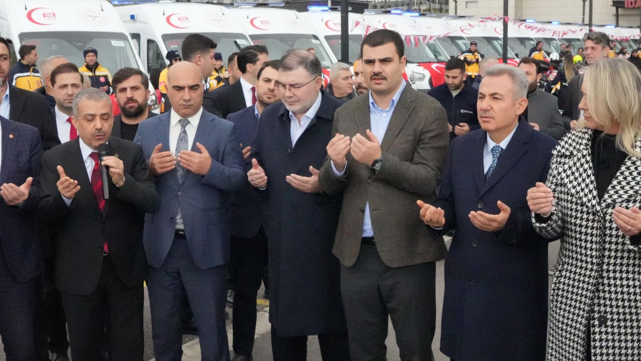 “Sağlıklı Türkiye Yüzyılı” vizyonu kapsamında temin edilen ambulanslar için İzmir Şehir Hastanesi’nde teslim töreni gerçekleştirildi. Törene İzmir Valisi Süleyman Elban, AK Parti Genel Sekreteri ve İzmir Milletvekili Eyyüp Kadir İnan, AK Parti İzmir Milletvekili Ceyda Bölünmez Çankırı, İzmir İl Sağlık Müdürü Doç. Dr. Ayhan Kul, AK Parti İzmir İl Başkanı Bilal Saygılı, MHP İzmir İl Başkanı Veysel Şahin, İzmir Şehir Hastanesi Başhekimi Prof. Dr. Yaprak Üstün ve sağlık çalışanları katıldı.